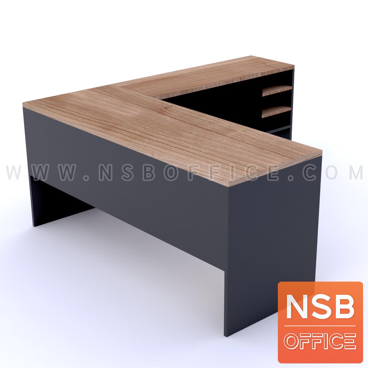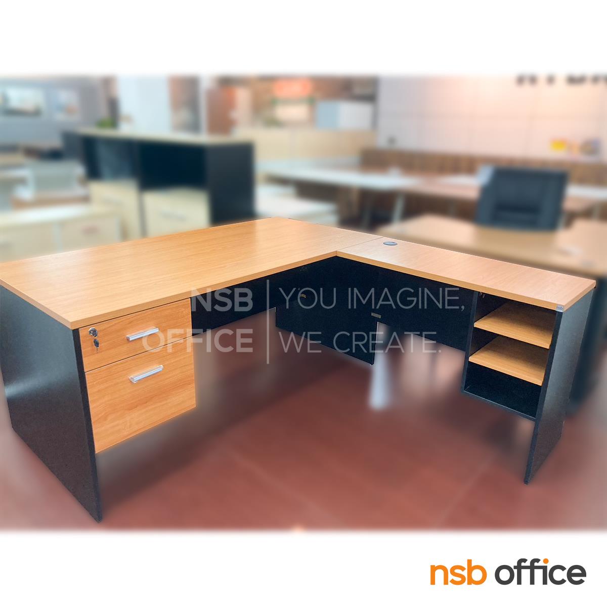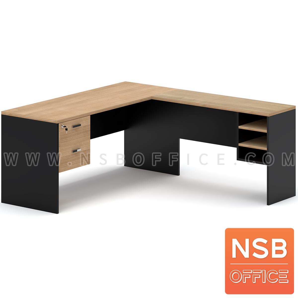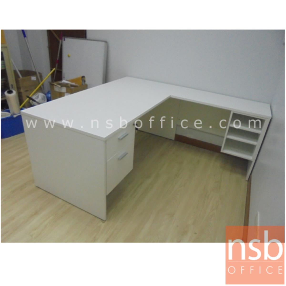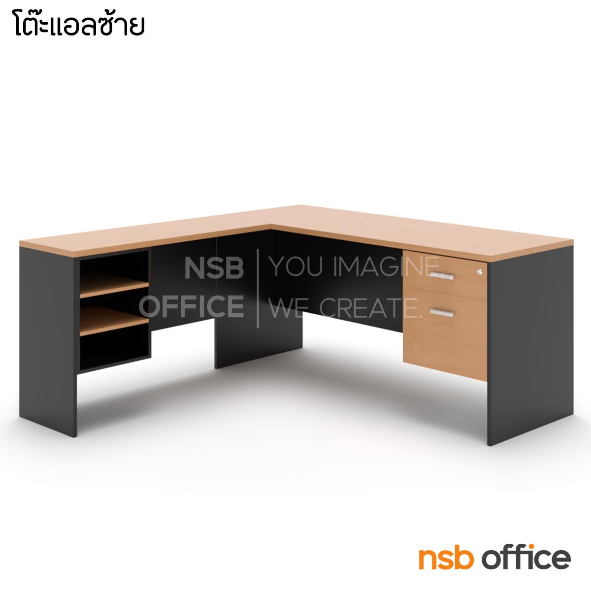 A12A036: โต๊ะทำงานตัวแอล 2 ลิ้นชัก 3 ช่องโล่ง รุ่น Curran (เคอร์แรน) ขนาด 165W1*180W2 cm. เมลามีน
