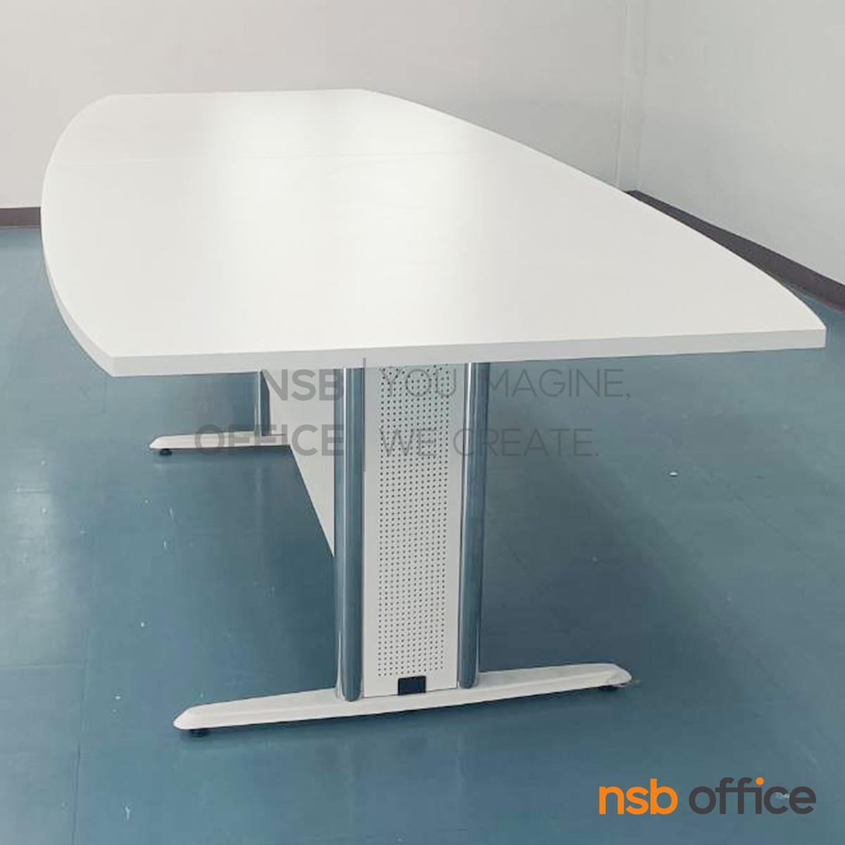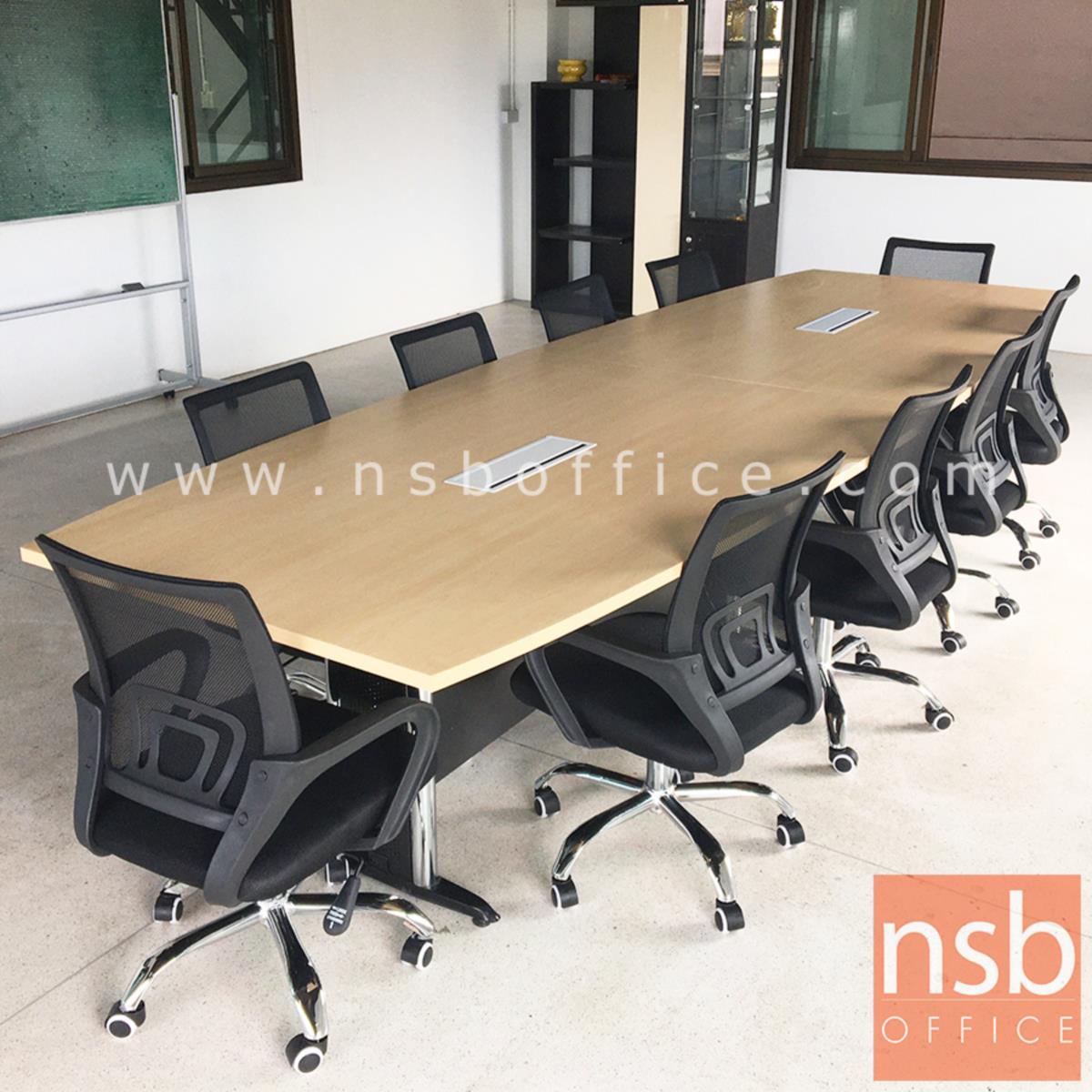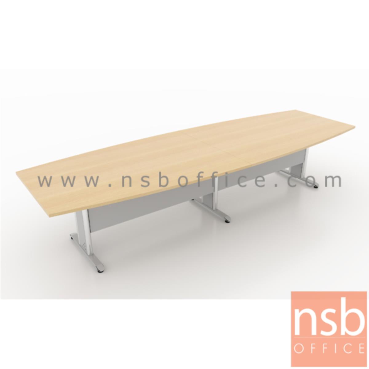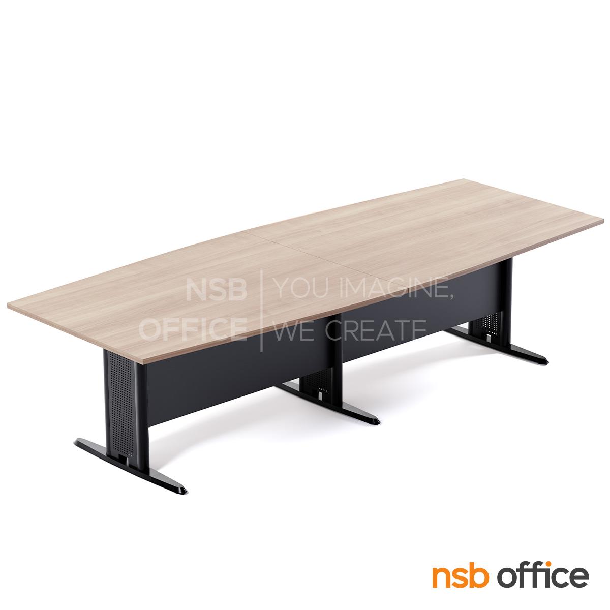 A05A080: โต๊ะประชุมกลางต่อทรงเรือ รุ่น Ilexa (ไอเล็กซ่า) 300W, 360W, 400W, 480W cm. พร้อมบังโป๊ไม้ ขาเหล็กตัวที