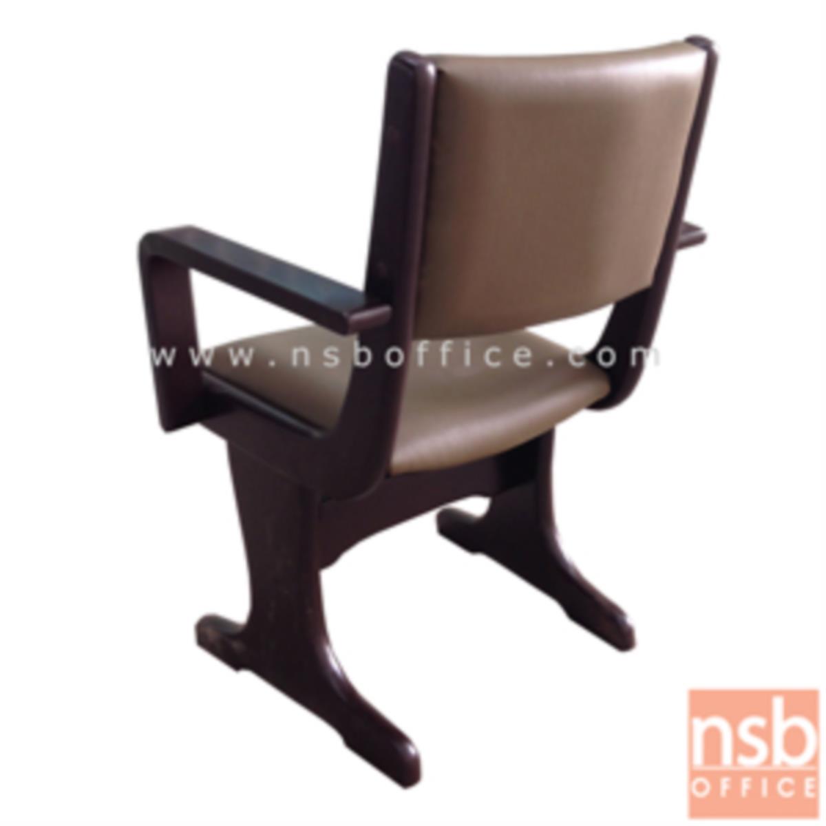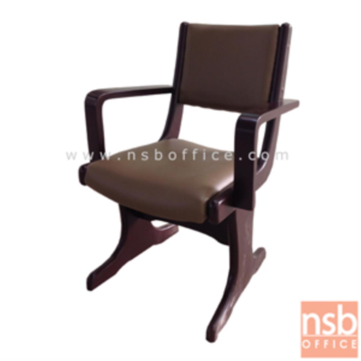 G14A066: เก้าอี้ไม้ยางพาราที่นั่งหุ้มหนังเทียม 57W cm. ขาไม้ตัวที