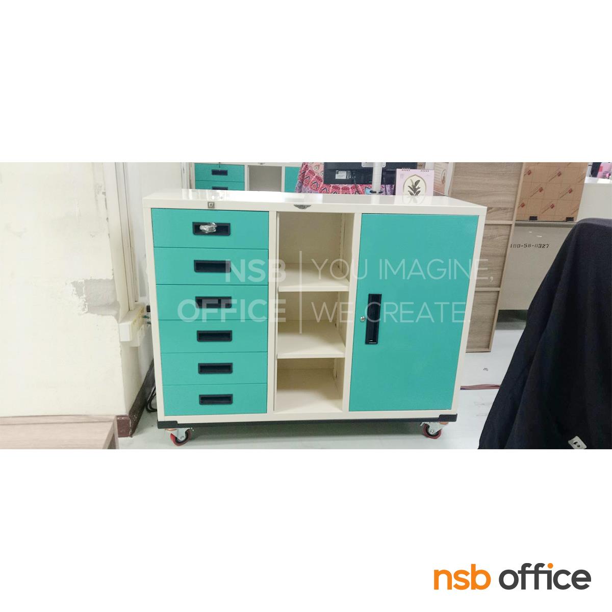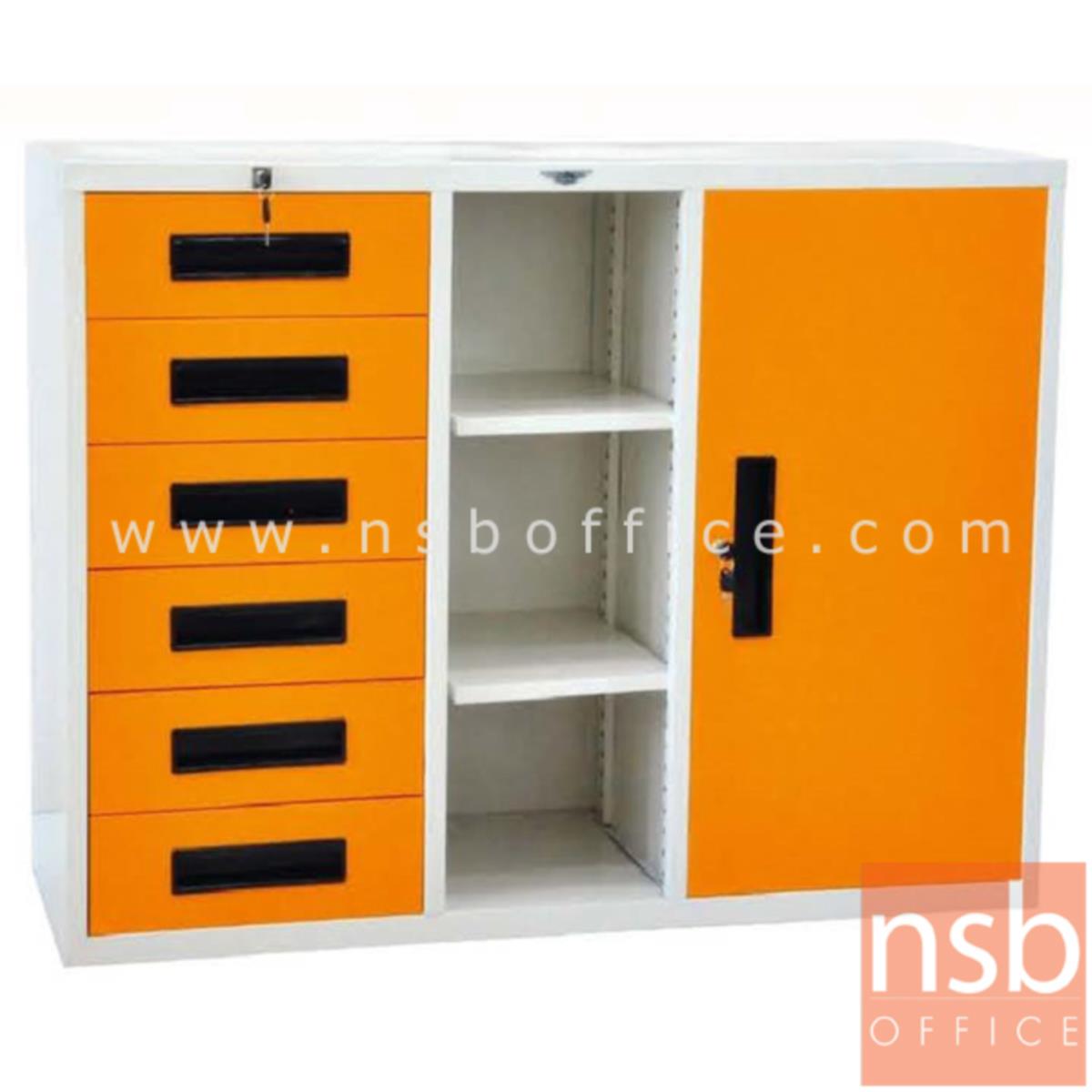 E07A004: ตู้เอกสารเหล็ก 1 บานเปิด 6 ลิ้นชัก ช่องโล่งกลาง รุ่น Elder (เอลเดอร์) ขนาด 4 ฟุต 121.8W*87.3H cm.