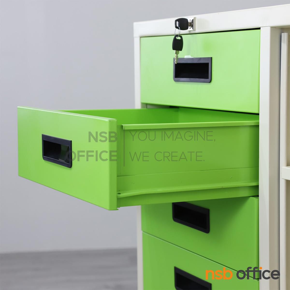 มือจับเป็นแบบฝังพร้อมกุญแจ ลิ้นชัก 6 ช่อง อยู่ด้านซ้ายมือ มีช่องโล่งตรงกลาง พ่นด้วยสี Epoxy