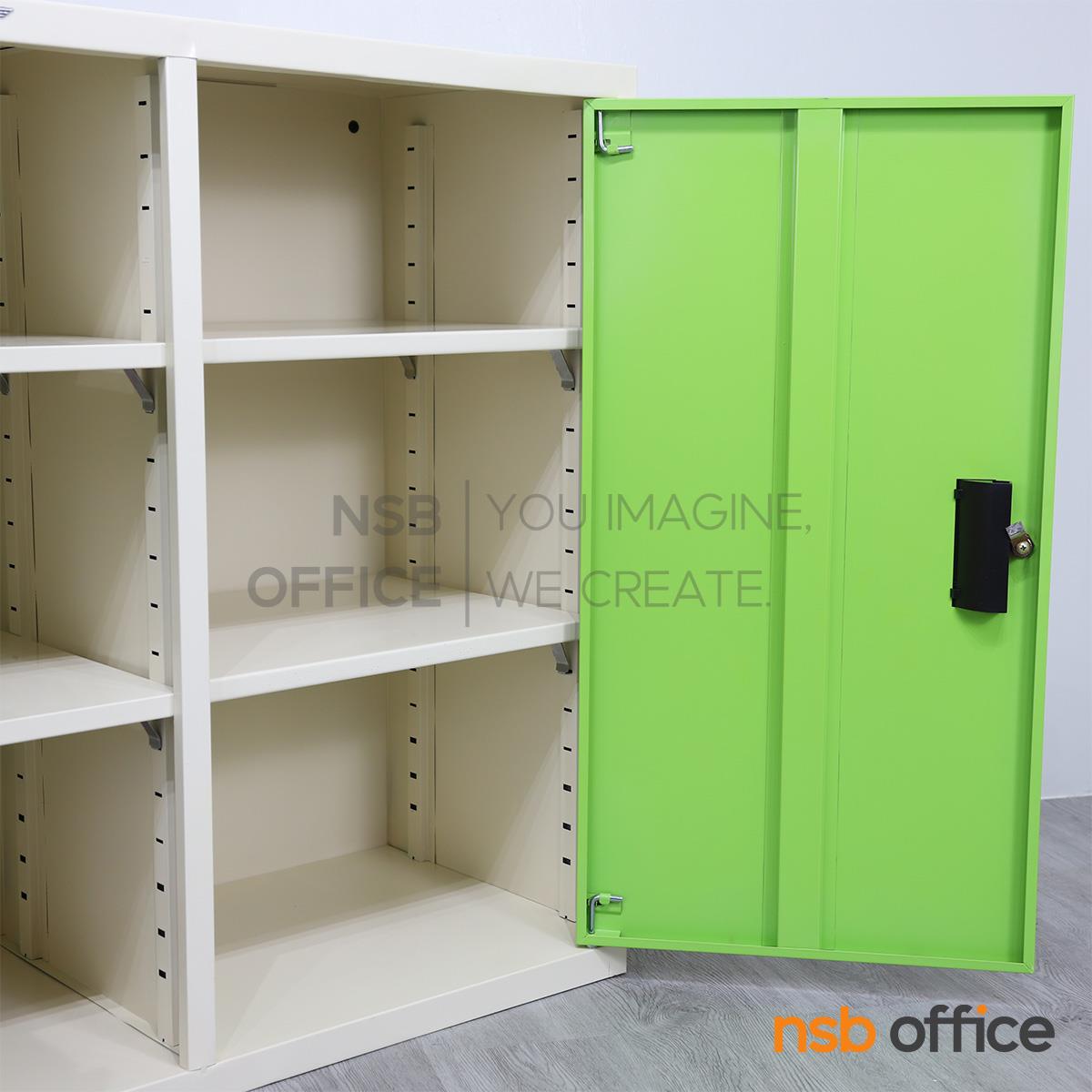 ประตูบานเปิดอยู่ด้านขวา มีแผ่นชั้นปรับระดับ 2 แผ่น