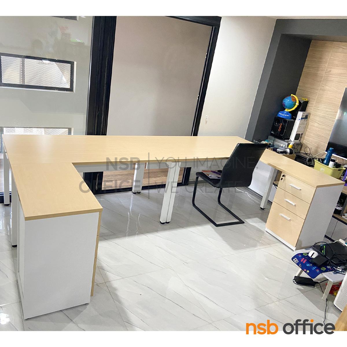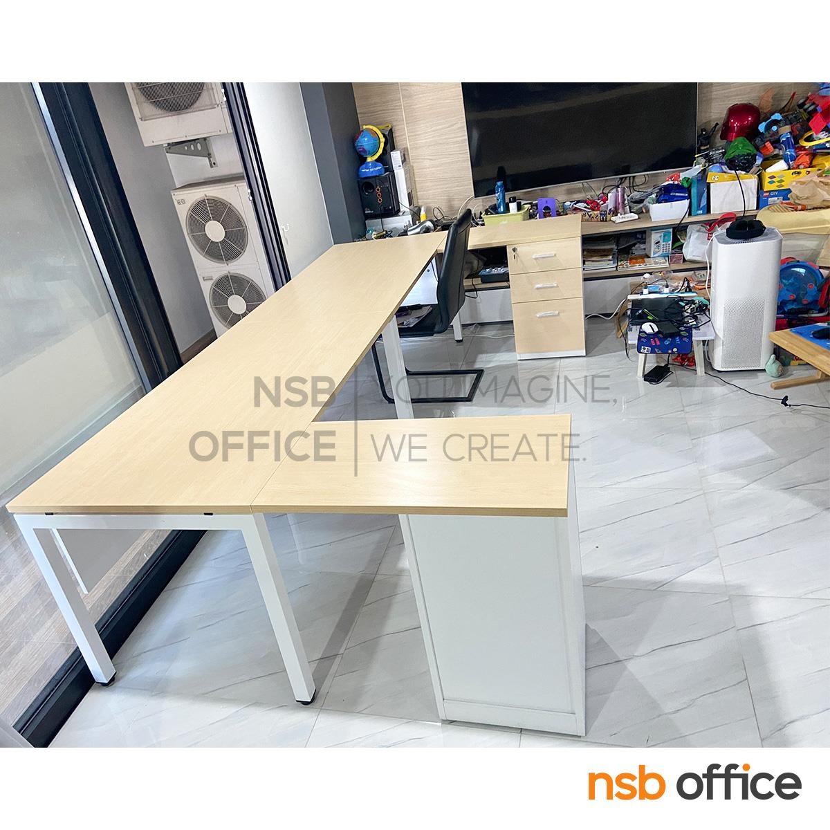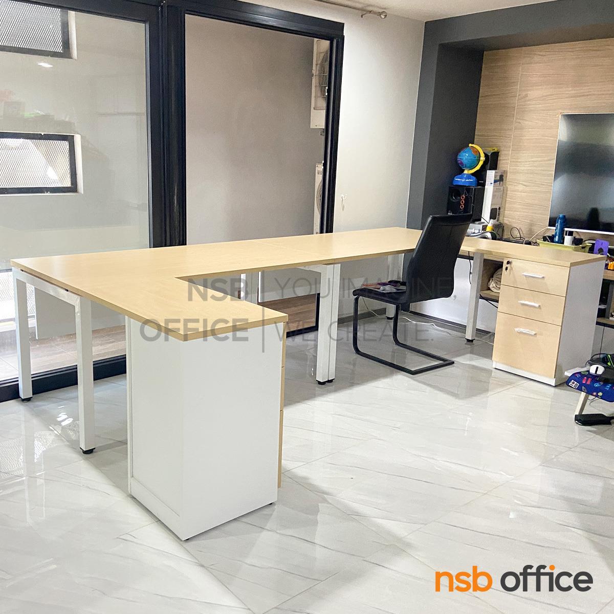 : โต๊ะทำงานตัวแอล ลิ้นชักไม้ รุ่น Infinix (อินฟีนิกซ์) ขนาด 180W1*180W2 cm. บังตาไม้ ขาเหล็ก