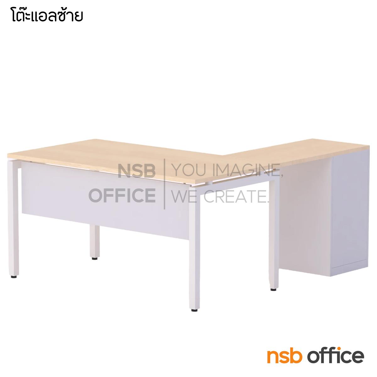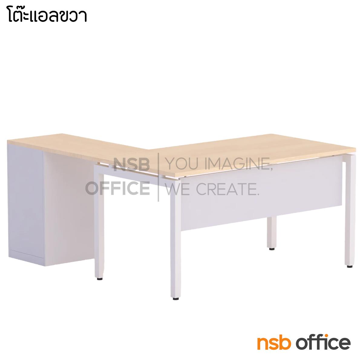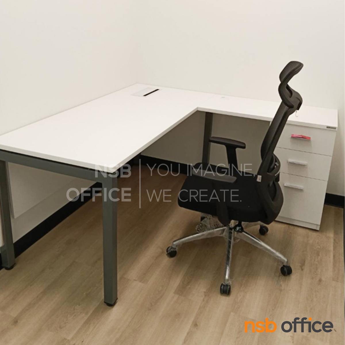 : โต๊ะทำงานตัวแอล ลิ้นชักไม้ รุ่น Infinix (อินฟีนิกซ์) ขนาด 150W1*160W2 cm. บังตาไม้ ขาเหล็ก