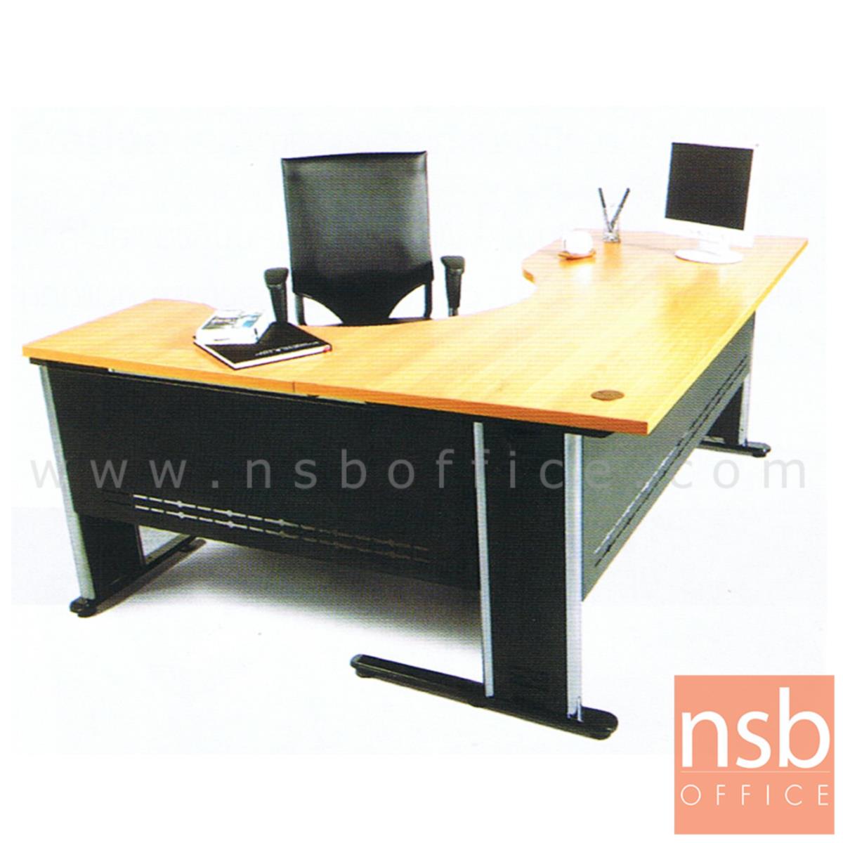 A06A002: โต๊ะผู้บริหารตัวแอลหน้าโค้งเว้า รุ่น Andorian ขนาด 160W1 ,180W1*180W2 cm. ขาเหล็ก (12/1/67)