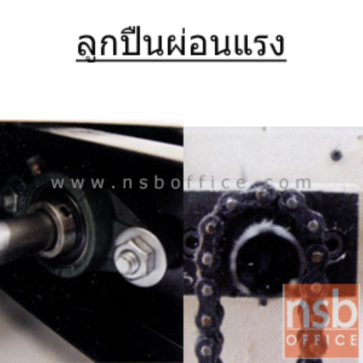 โซ่และเฟืองใช้สำหรับฐานตู้ใช้เบอร์ R40 เฟือง 11, 18, 25 ฟันเป็นอย่างต่ำ พร้อมเพลาส่งกำลังเพื่อขับเคลื่อนใส่ลูกปืน No.6204 ล้อละ 1 ตัว จำนวน 4 ล้อ