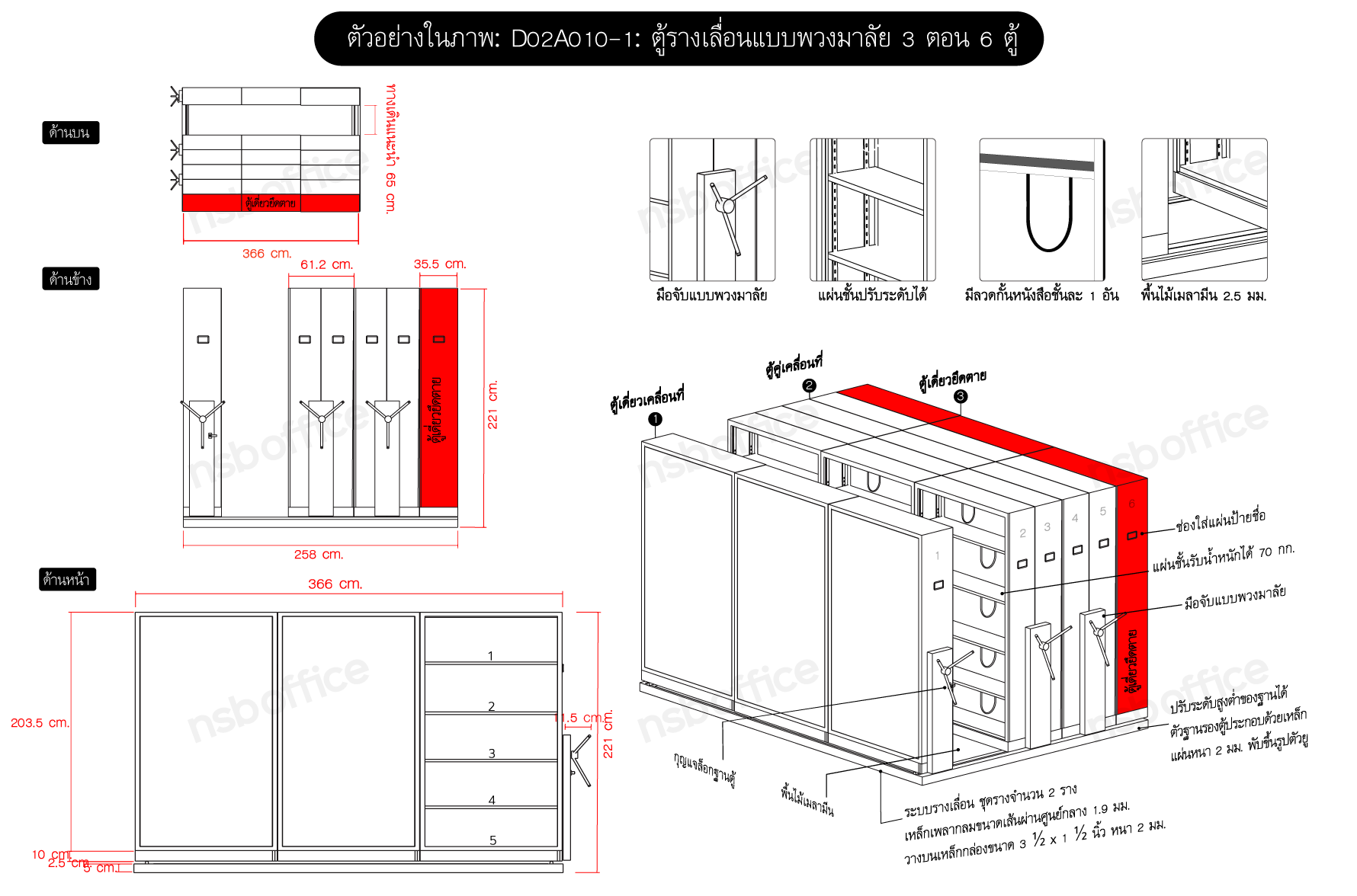 : 6 ตู้ 258W*366D*221H cm (ความจุ 1,350 แฟ้ม)