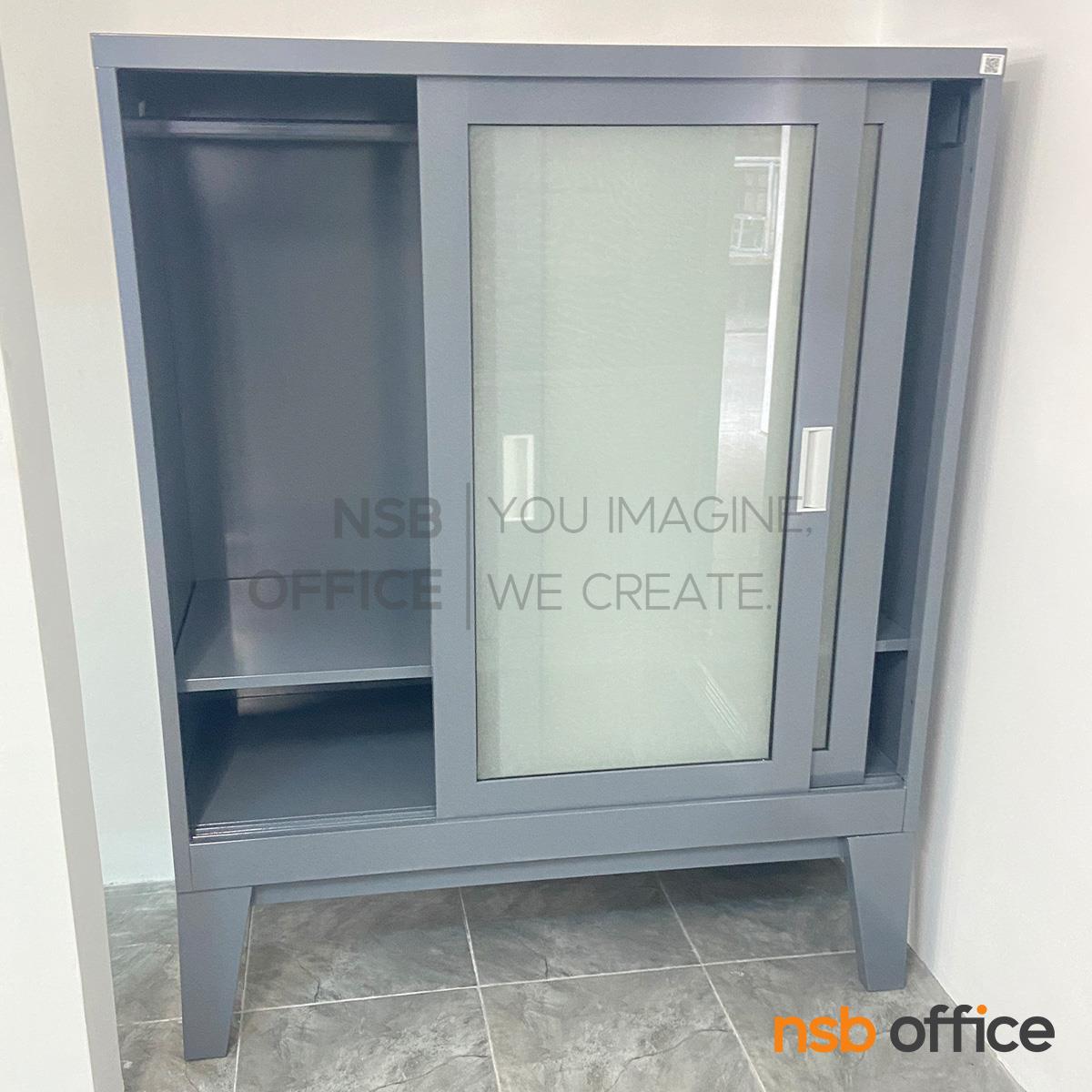 : ตู้เสื้อผ้า 2 บานเลื่อนกระจกเตี้ย 150H cm. ขาลอย รุ่น WD-03 กระจกฝ้า