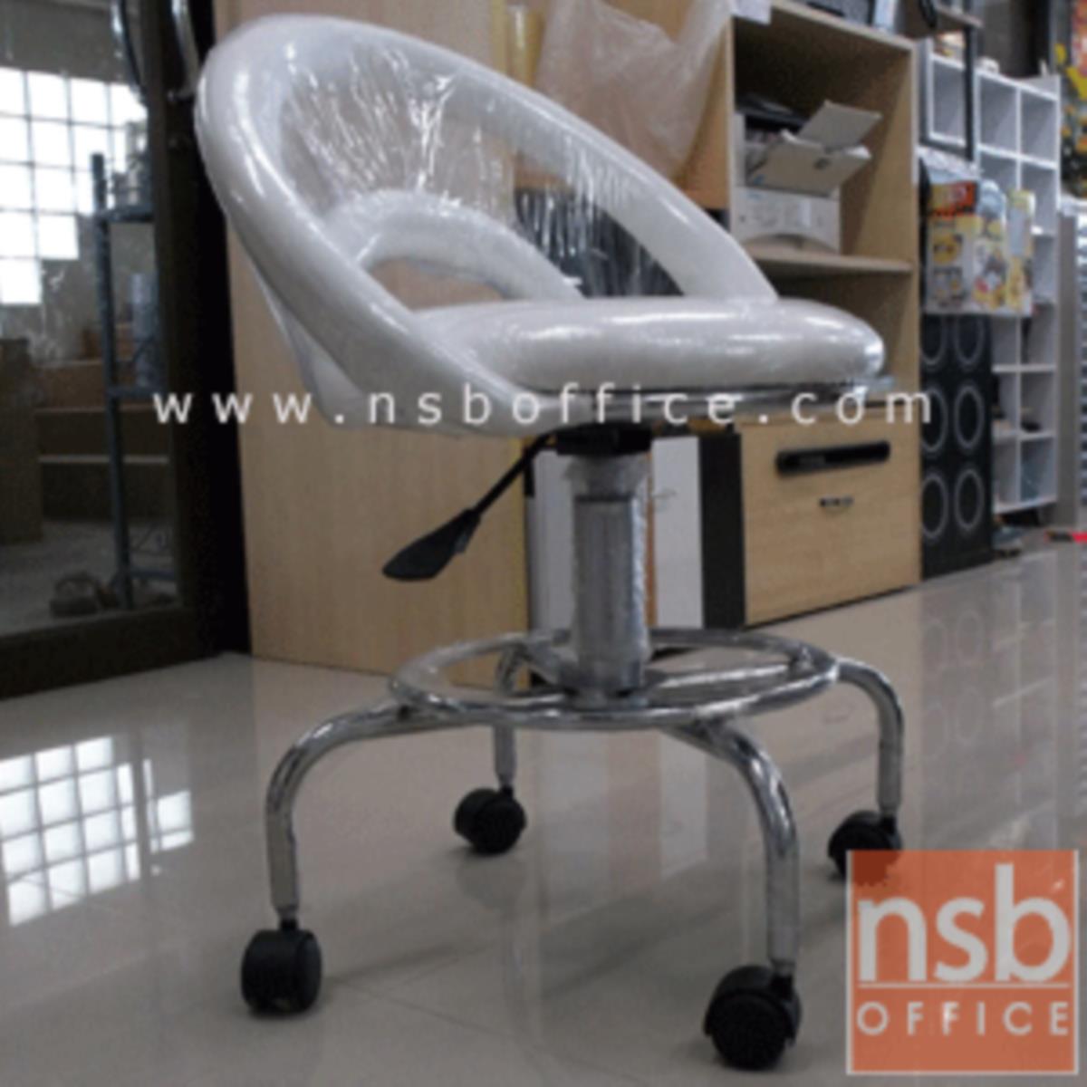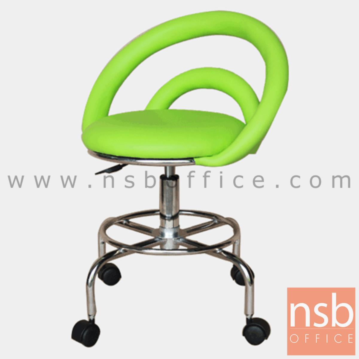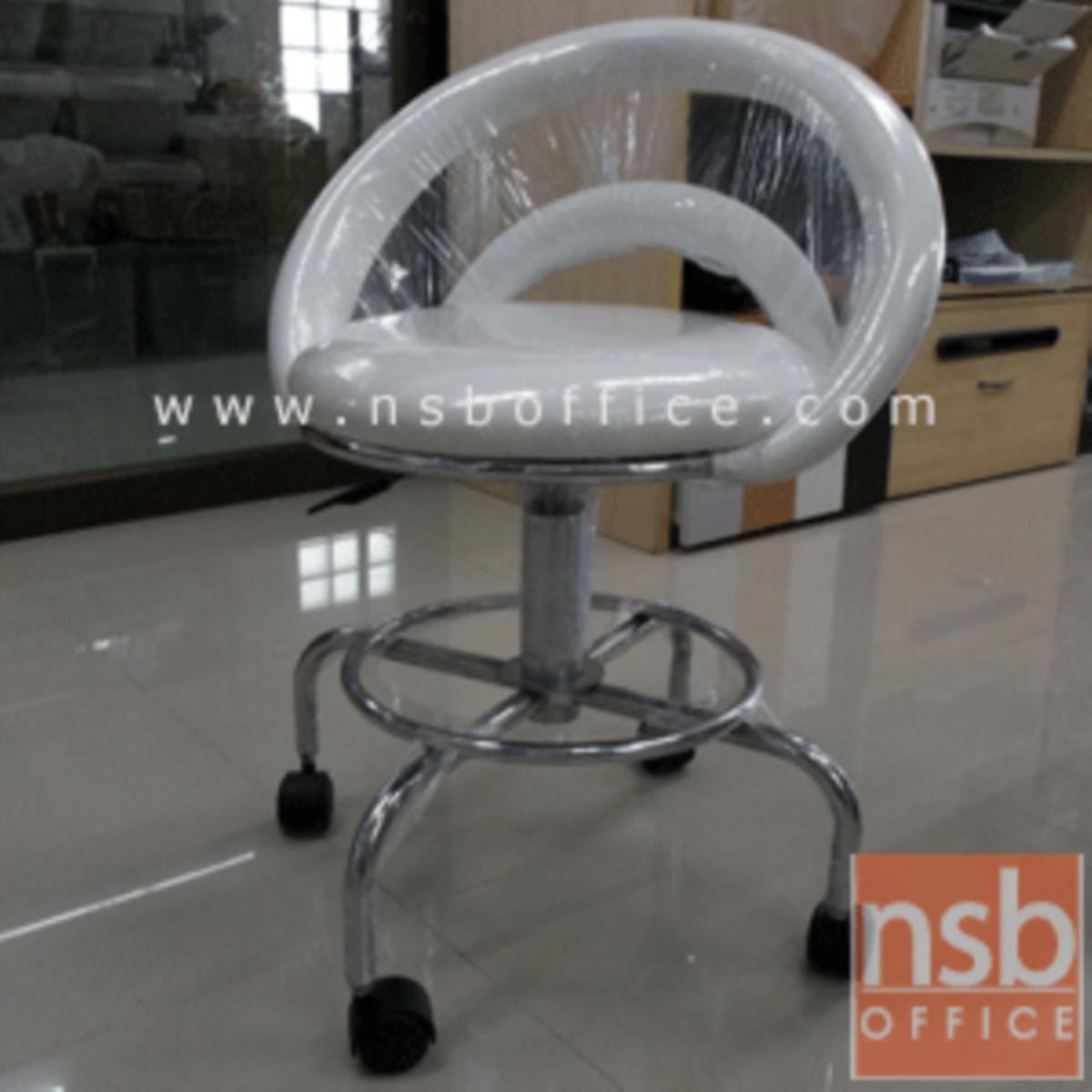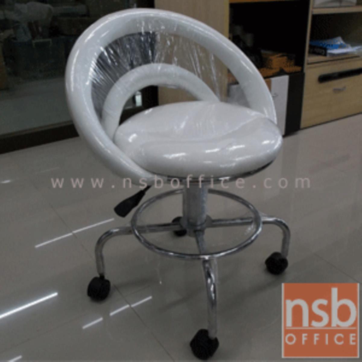 (ความสูงจากพื้นถึงที่นั่ง 49 cm.) ปรับระดับสูงต่ำได้ ที่นั่งหมุนได้ มีพักเท้า ล้อเลื่อน 5 แฉก /ที่นั่ง-พนักพิงบุฟองน้ำหุ้มหนังเทียม สามารถเลือกสีได้