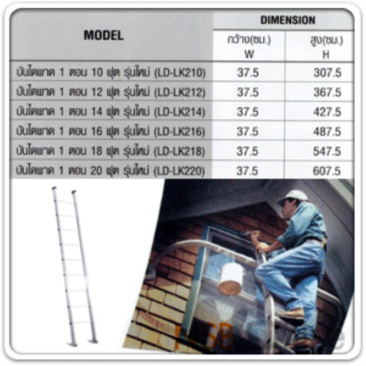 บันไดกางพาดตรง แบบ 1 ตอน มีมอก. มาตรฐานอุตสาหกรรม มอก. (4.8 ม.++)