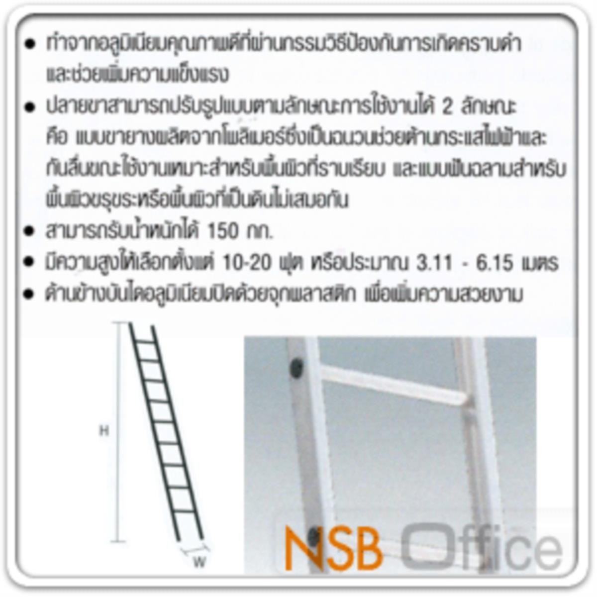 บันไดอลูมิเนียมแบบกางพาด 1 ตอน เลื่อนได้ มีจุกยางรองขาบันได
