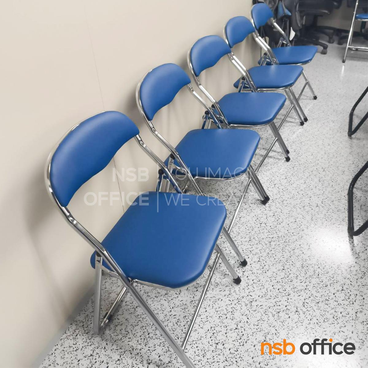 B09A114: เก้าอี้พับที่นั่งหุ้มเบาะหนัง รุ่น BRANDY ขาเหล็กชุบโครเมี่ยม