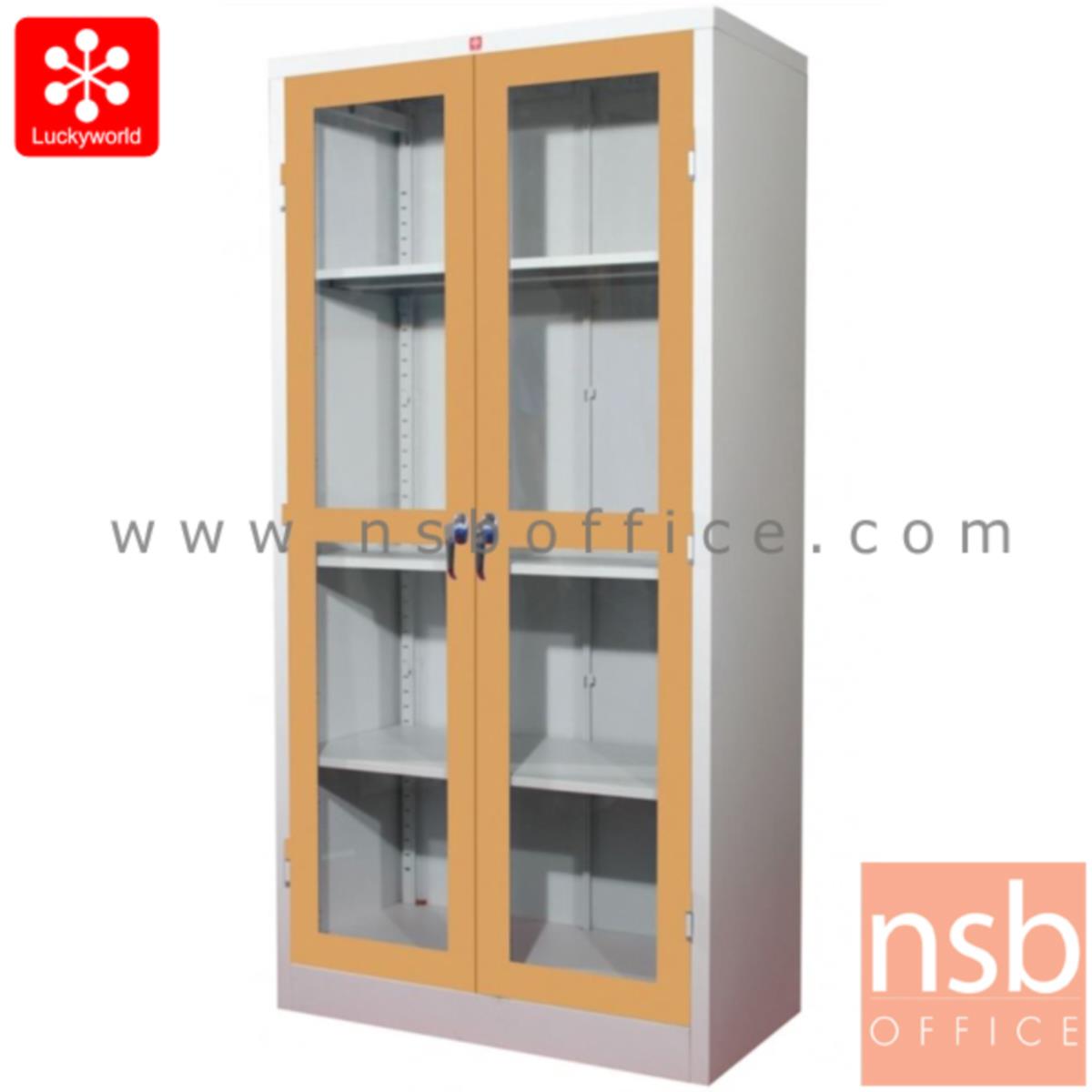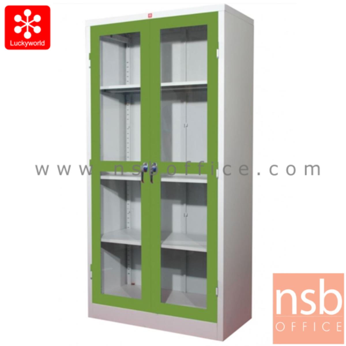 E07A033: ตู้เอกสารเหล็ก 2 บานเปิดกระจก รุ่น KWG-183 ขนาด 91.4W*183H cm. มือจับบิด (สีสัน)