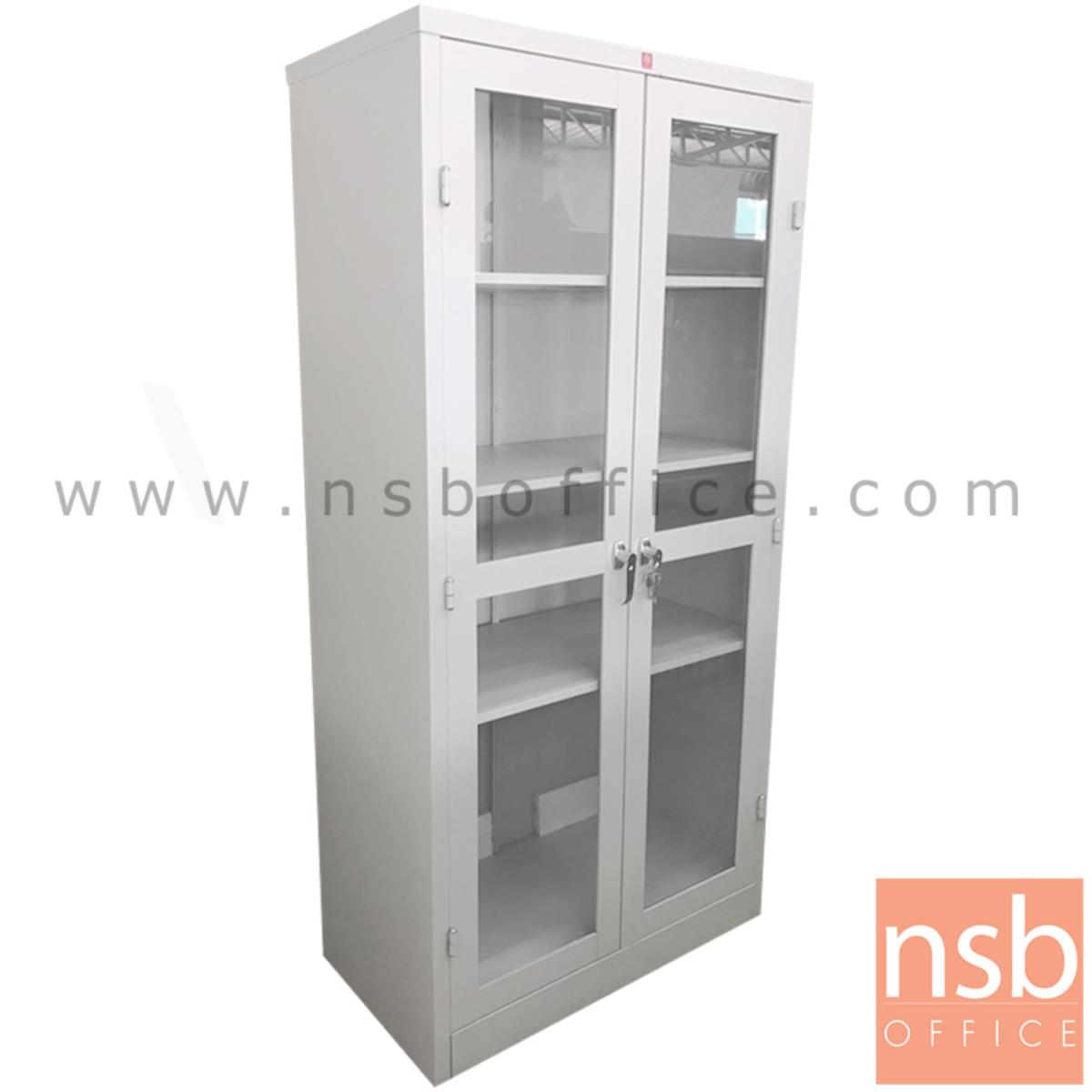 : ตู้เอกสารเหล็ก 2 บานเปิดกระจก รุ่น KWG-183 ขนาด 91.4W*183H cm. มือจับบิด (สีสัน)