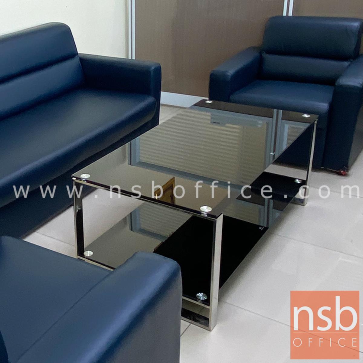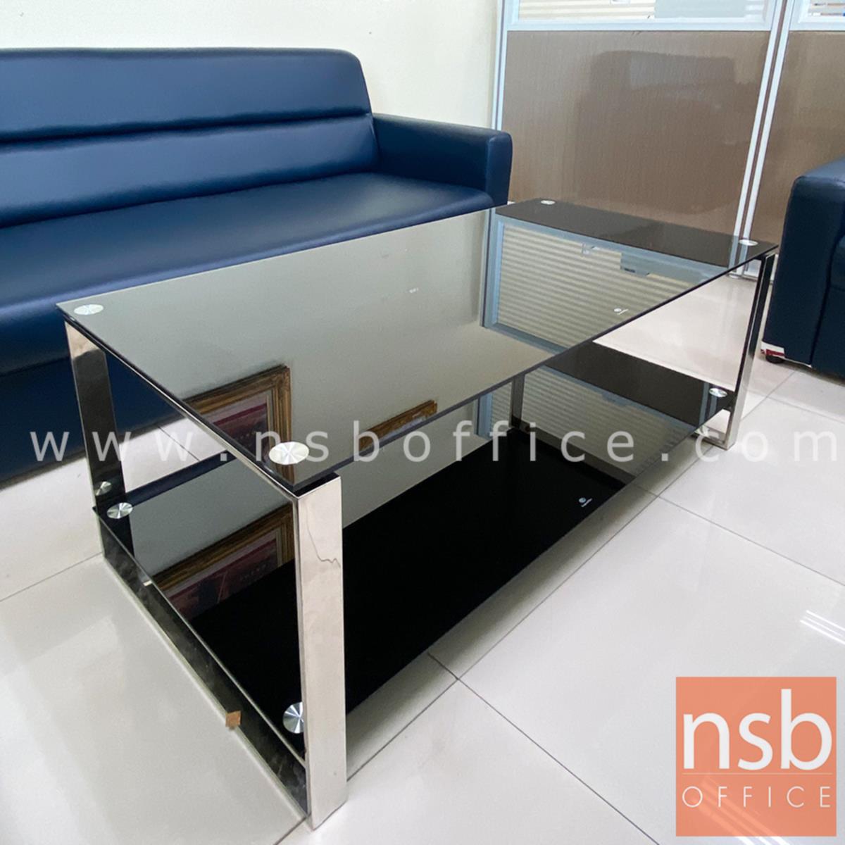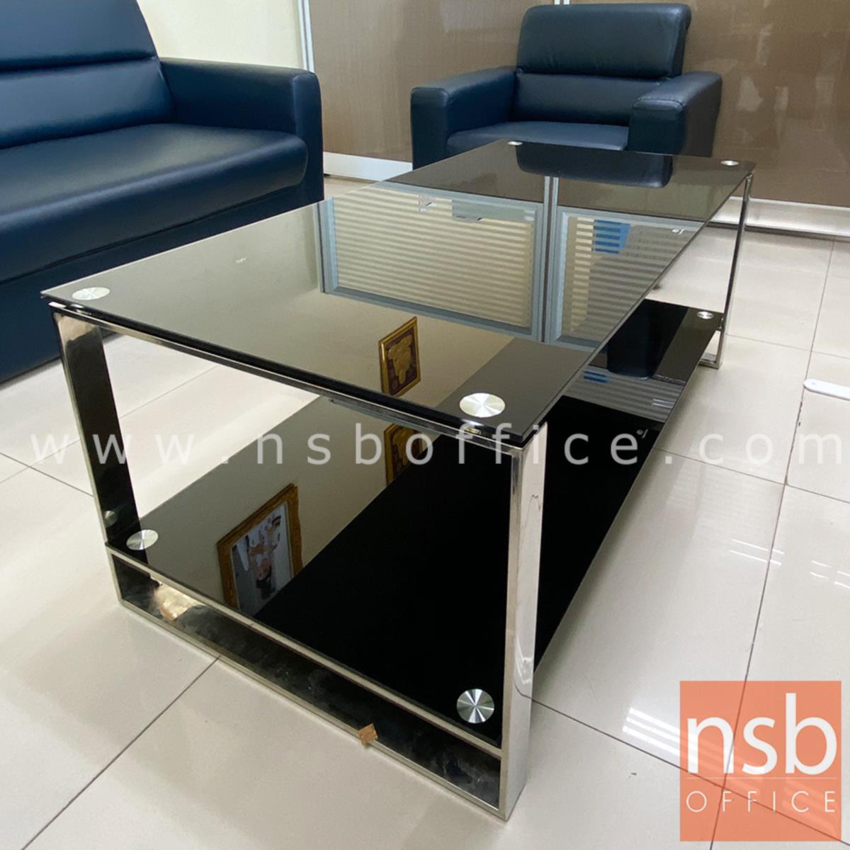 B13A151: โต๊ะกลางกระจกนิรภัยสีดำ รุ่น Macbeth (แม็คเบ็ธ) ขนาด 120W cm. โครงขาสแตนเลส