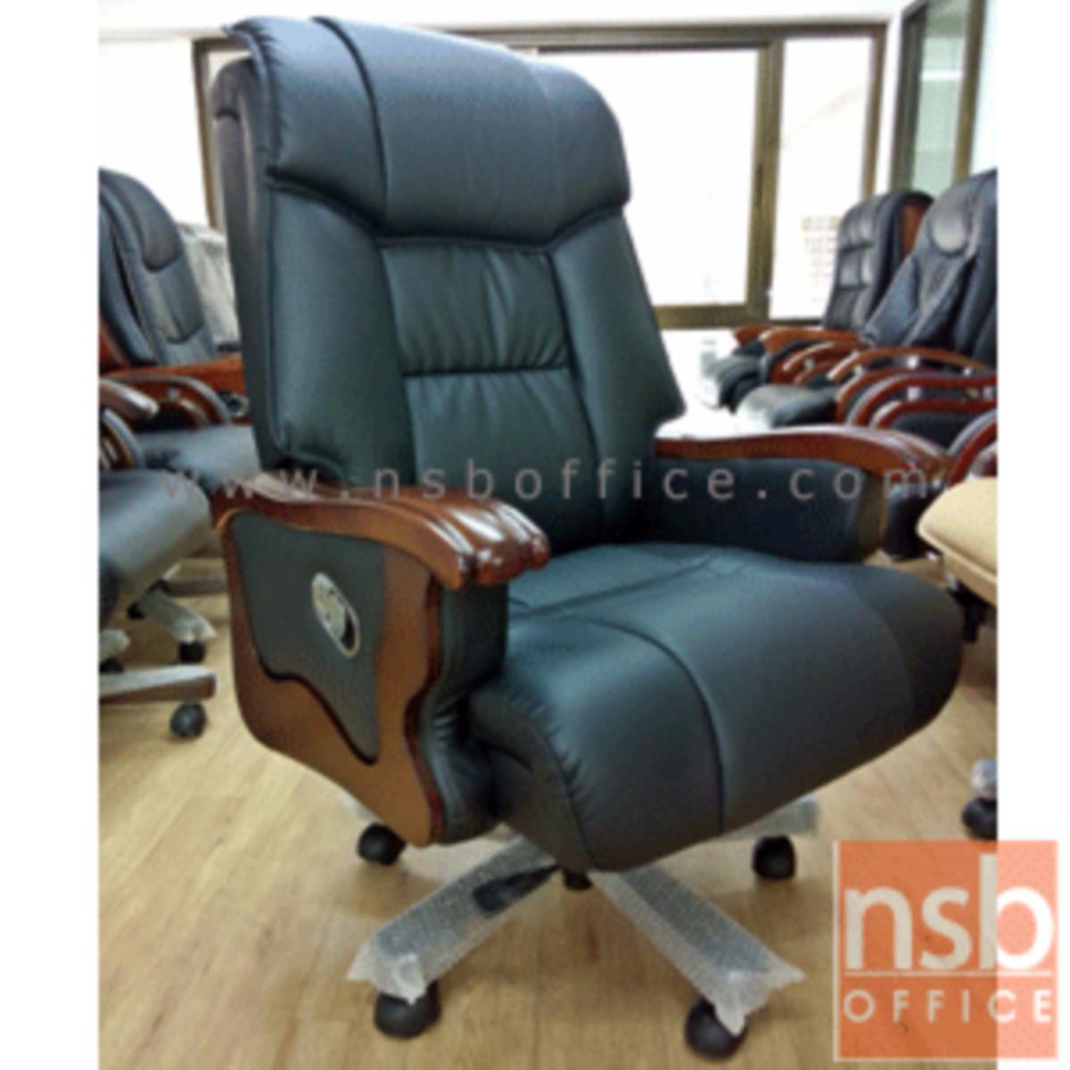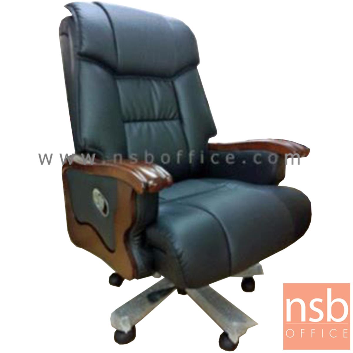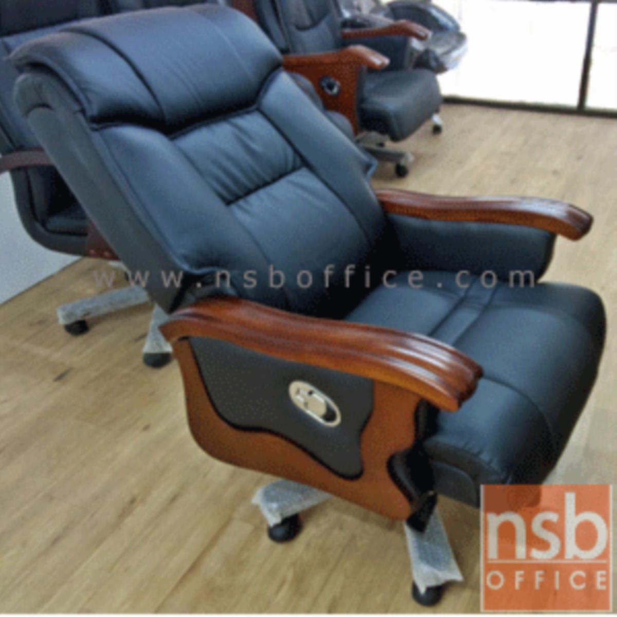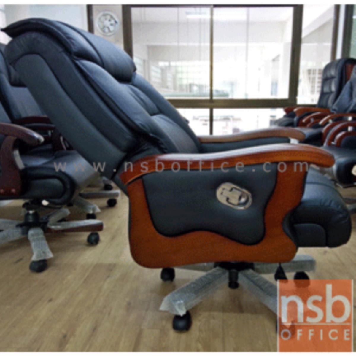 B25A064: เก้าอี้ผู้บริหารหนังแท้ รุ่น Patton (แพ็ทตัน) โช๊คแก๊ส มีก้อนโยก ขาไม้