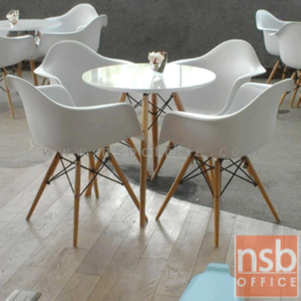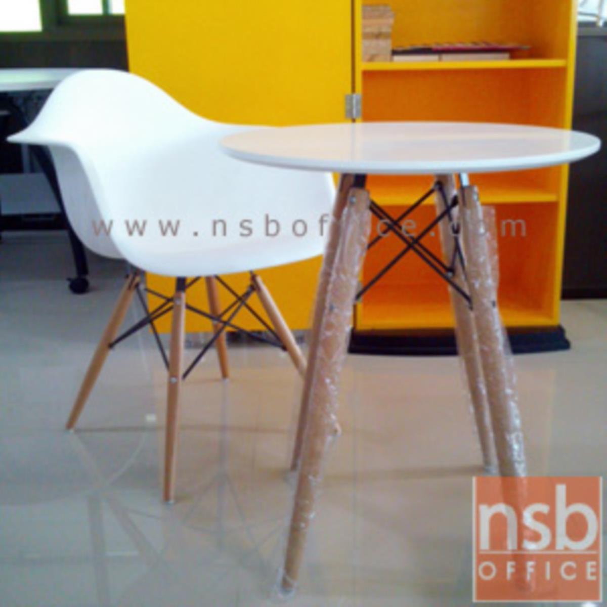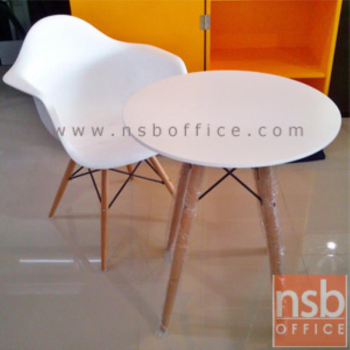 A09A100: โต๊ะหน้าไม้ MDF รุ่น Channing (แชนนิง) ขนาด 60Di , 80Di cm. เหล็กเส้นพ่นดำ ขาไม้สีบีช