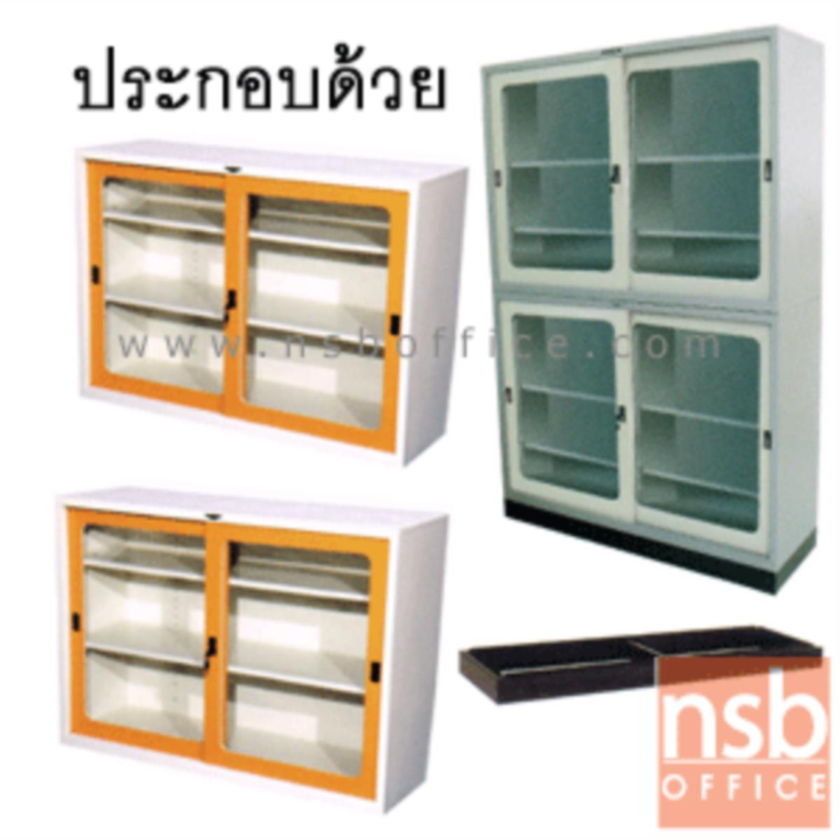 E07A036: ตู้เอกสารเหล็กบน-ล่างบานเลื่อนกระจกใส รุ่น Aaron (แอรอน) ผลิต 3, 4 และ 5 ฟุต พร้อมฐานรอง