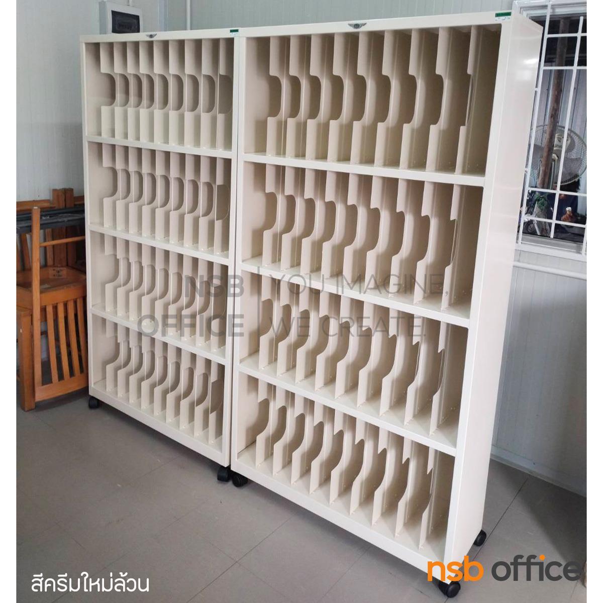 : ชั้นวางแฟ้มเหล็กตั้งล้อเลื่อน 4 ชั้น 40 ช่อง รุ่น Carter (คาร์เตอร์) ขนาด 91.7W*176H cm.