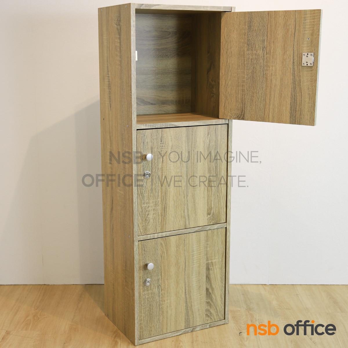 E08A045: ตู้ล็อคเกอร์ไม้คอนโด 3 ชั้น รุ่น NMM-XL381 กุญแจล็อคแยก สีโซลิคล้วน