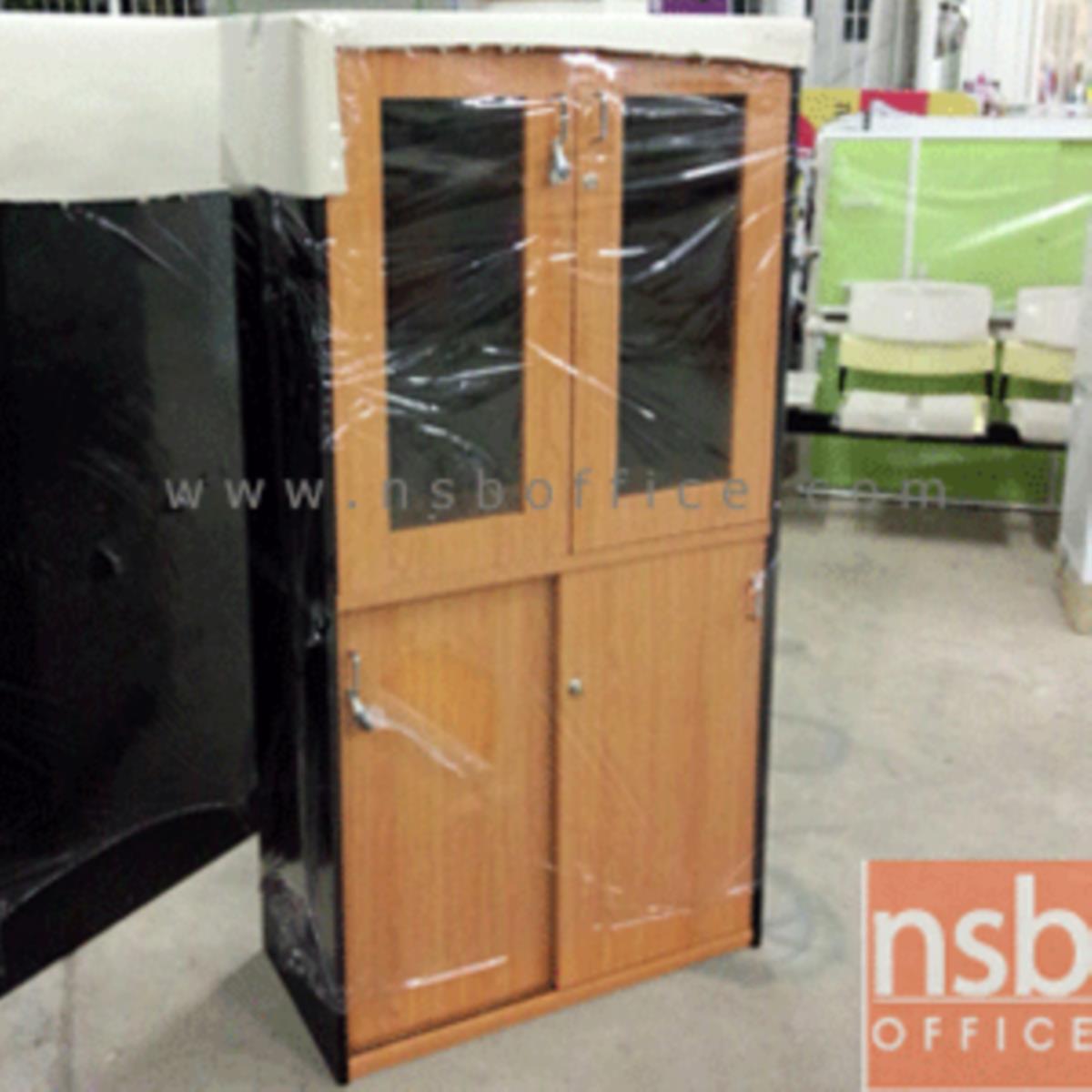C02A050: ตู้เอกสาร บนบานเปิดกระจก ล่างบานเลื่อนทึบ รุ่น Nestor (เนสเตอร์) สูง 150 ,160 cm. เมลามีน