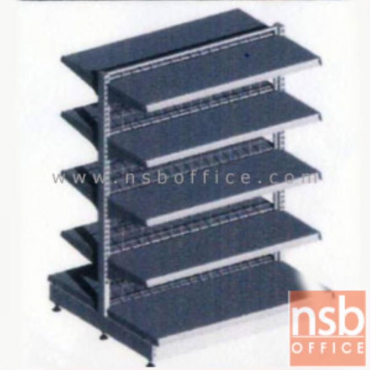 ชั้นเหล็กซุปเปอร์มาร์เก็ตวางได้สองด้านมีแผ่นชั้น 5+5 แผ่น สามารถปรับระดับได้ มีเหล็กหนา 0.7 mm.
