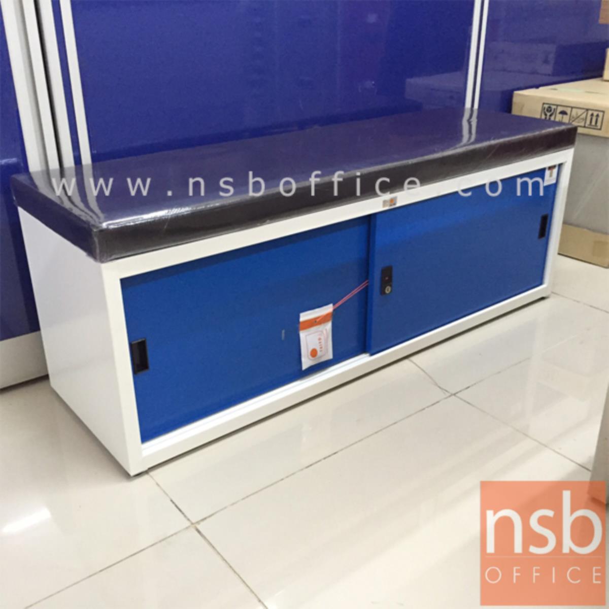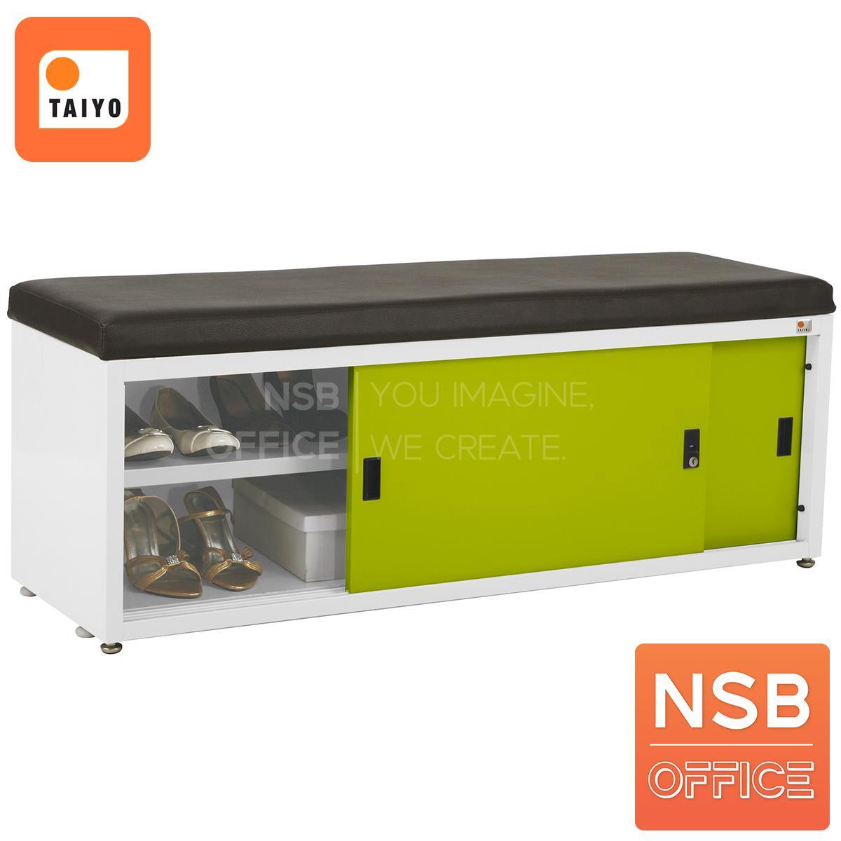 : ตู้รองเท้าบานเลื่อนเหล็ก หน้าบานสีสัน 120W cm. (13 คู่) มีเบาะหนังรองนั่ง