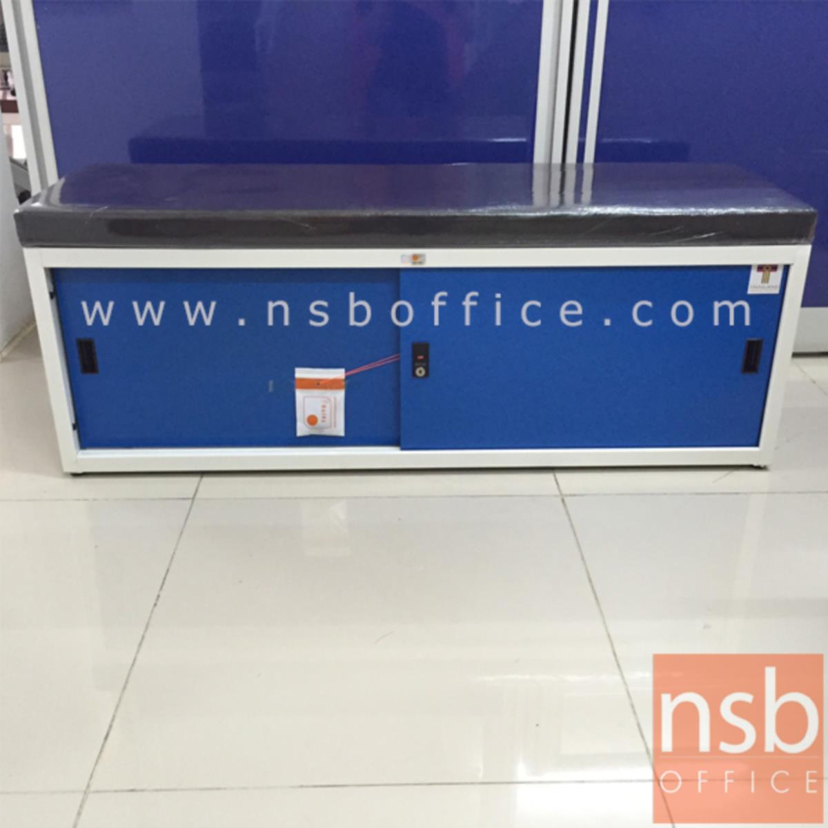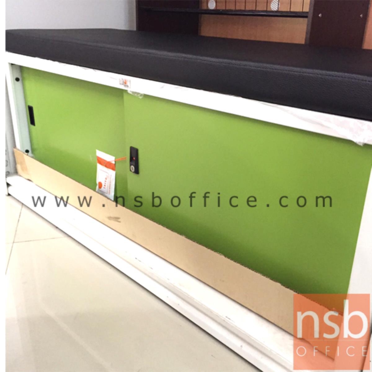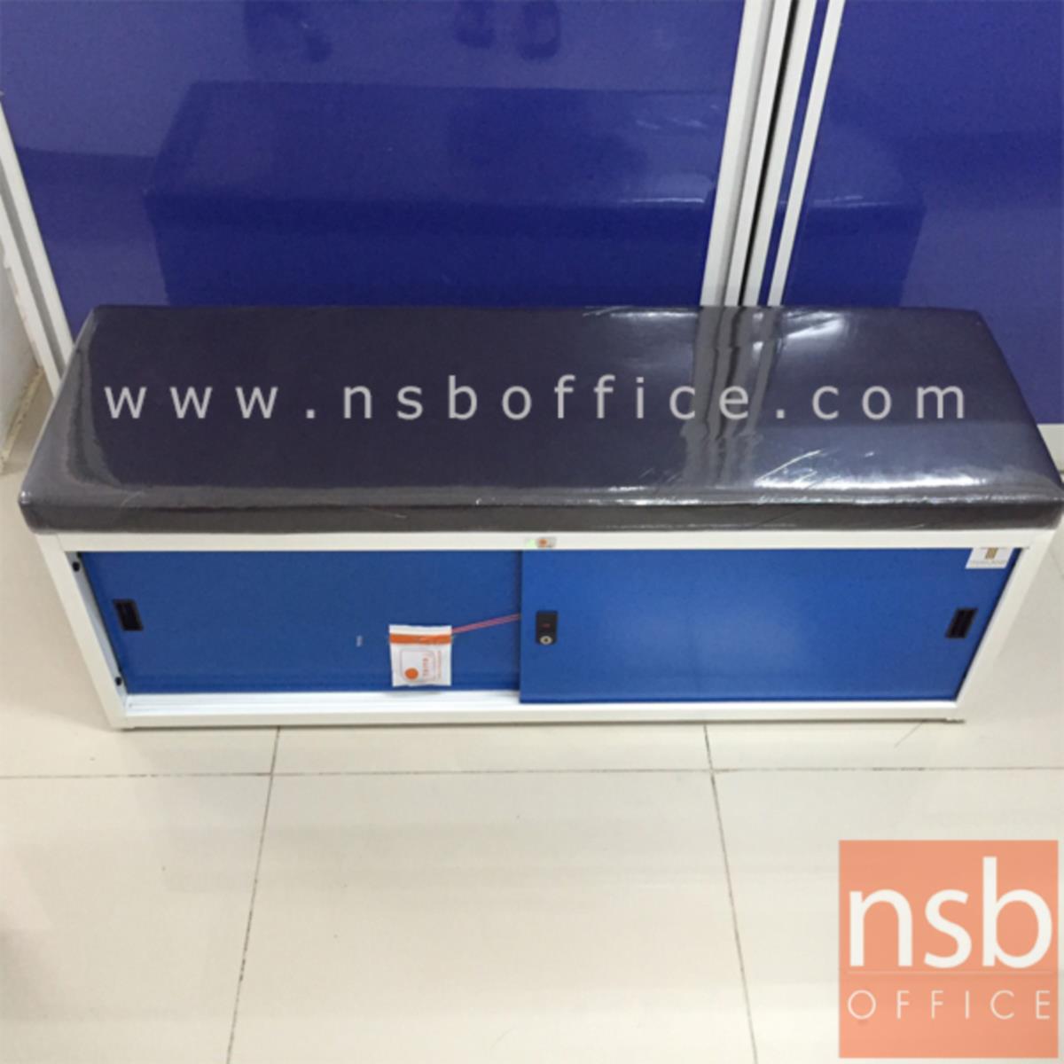 G05A043: ตู้รองเท้าบานเลื่อนเหล็ก หน้าบานสีสัน 120W cm. (13 คู่) มีเบาะหนังรองนั่ง