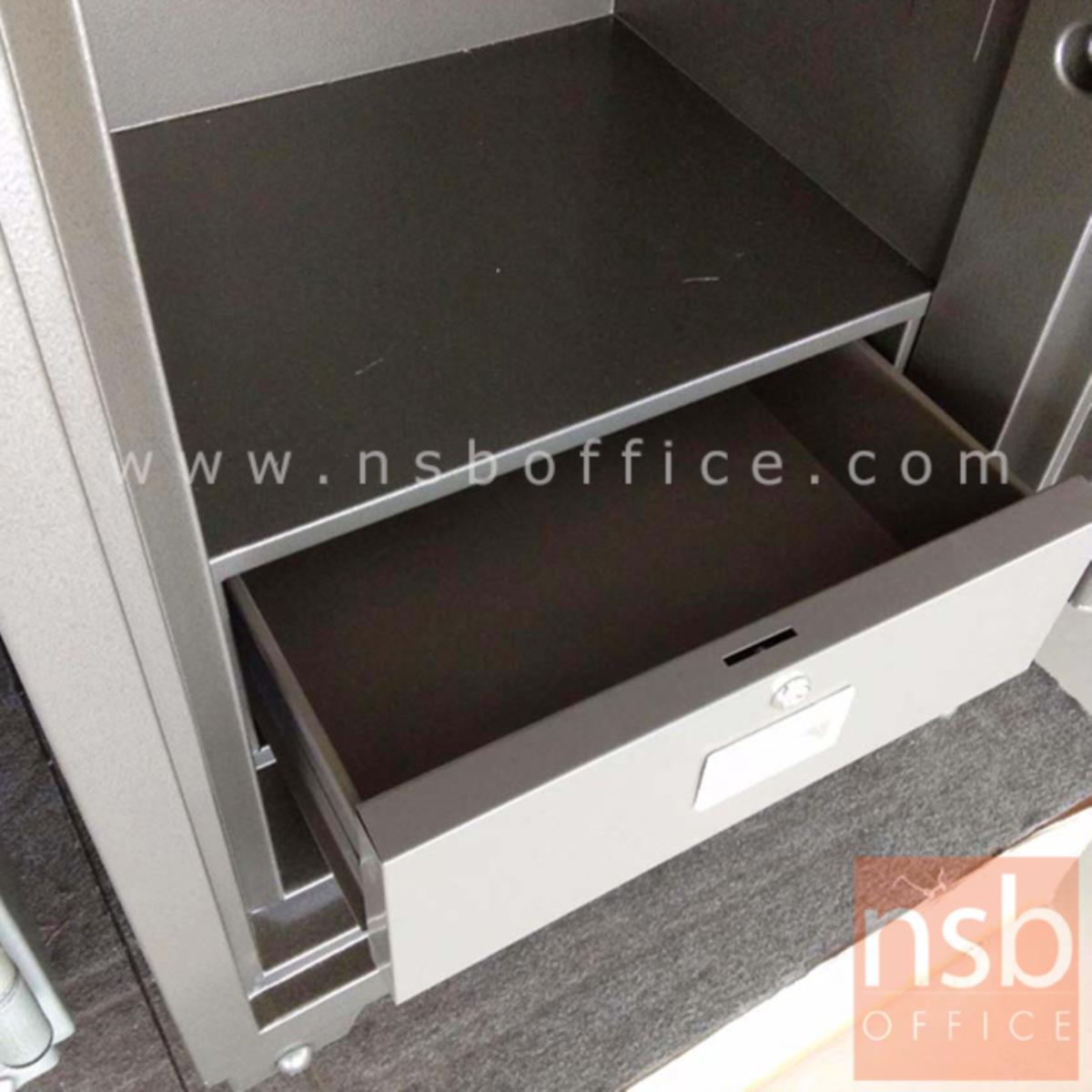 หน้าบานตู้มี 2 กุญแจ 1 รหัส ภายในมี 1 ลิ้นชักพร้อมกุญแจล็อคแยก และมี 2ถาดพลาสติก