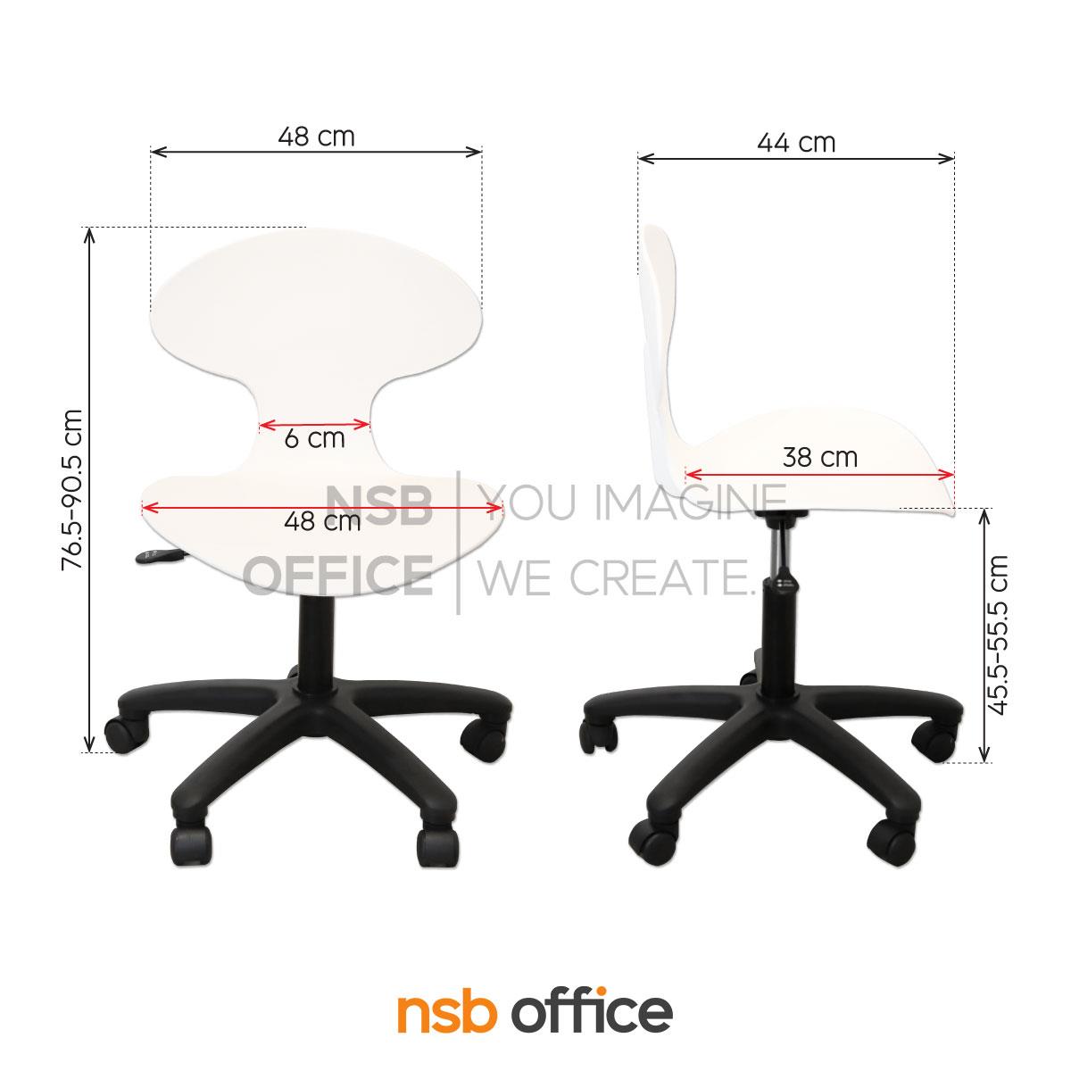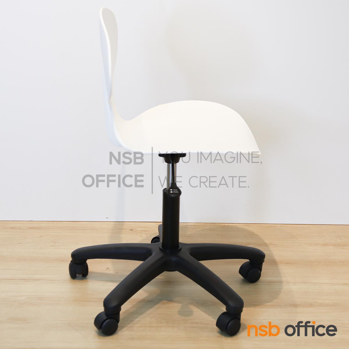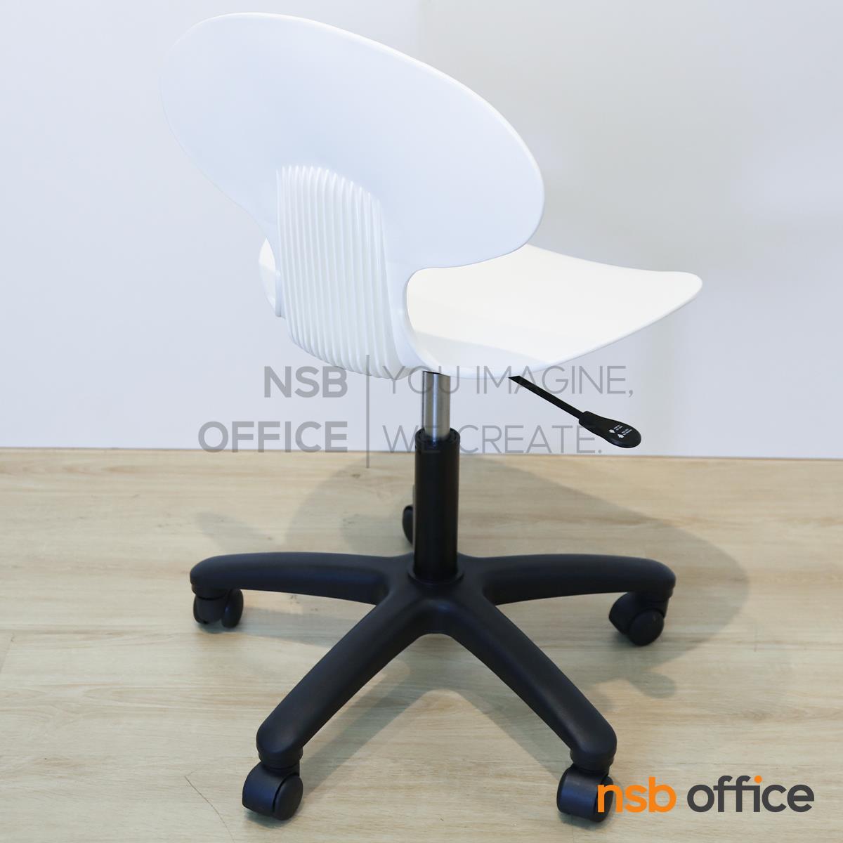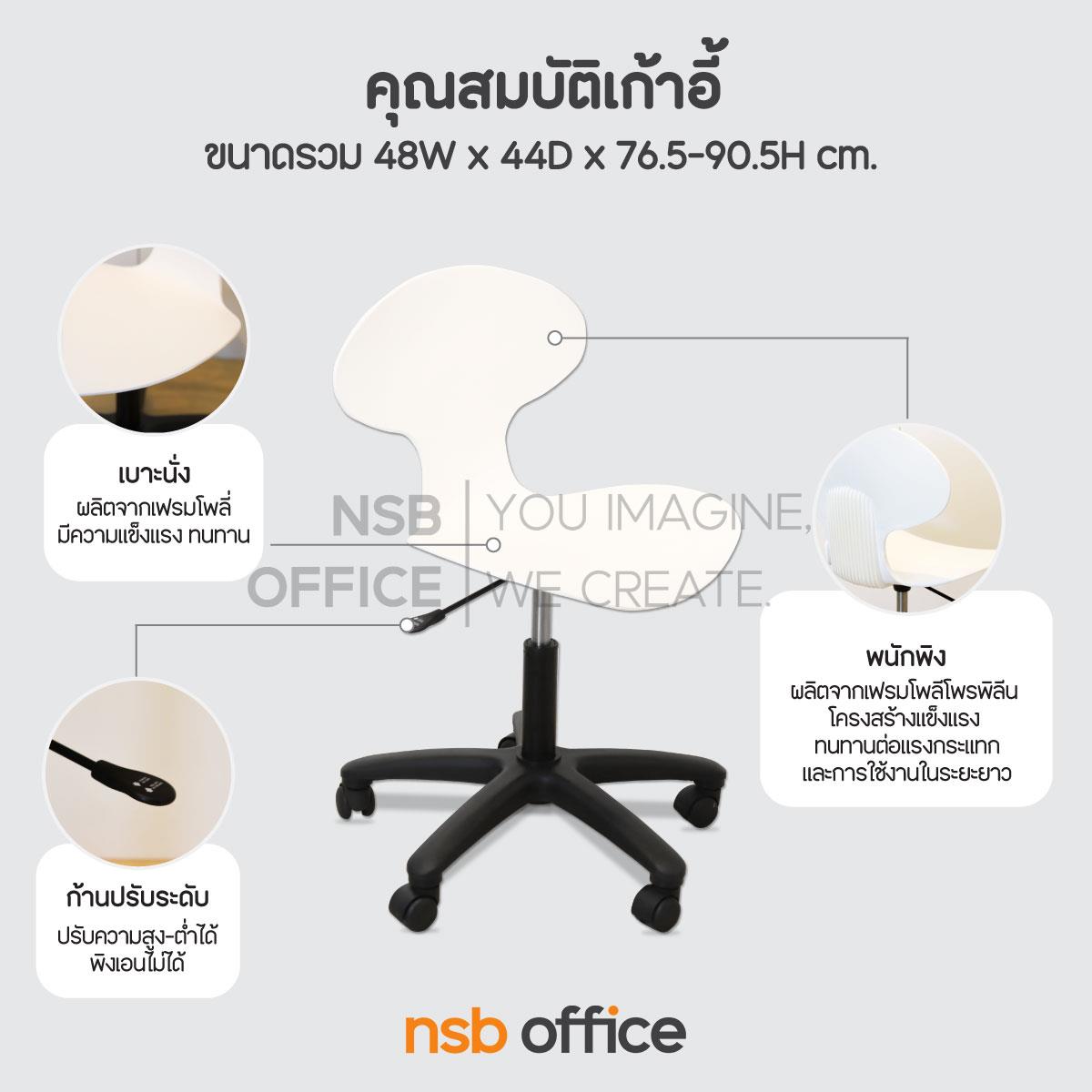 ขาพลาสติกล้อ 5 แฉก เก้าอี้ปรับระดับด้วยระบบโช๊คแก๊ส(ไฮโดรลิค) พนักพิงหลังเปลือกโพลี่หนา สามารถทำความสะอาดง่าย