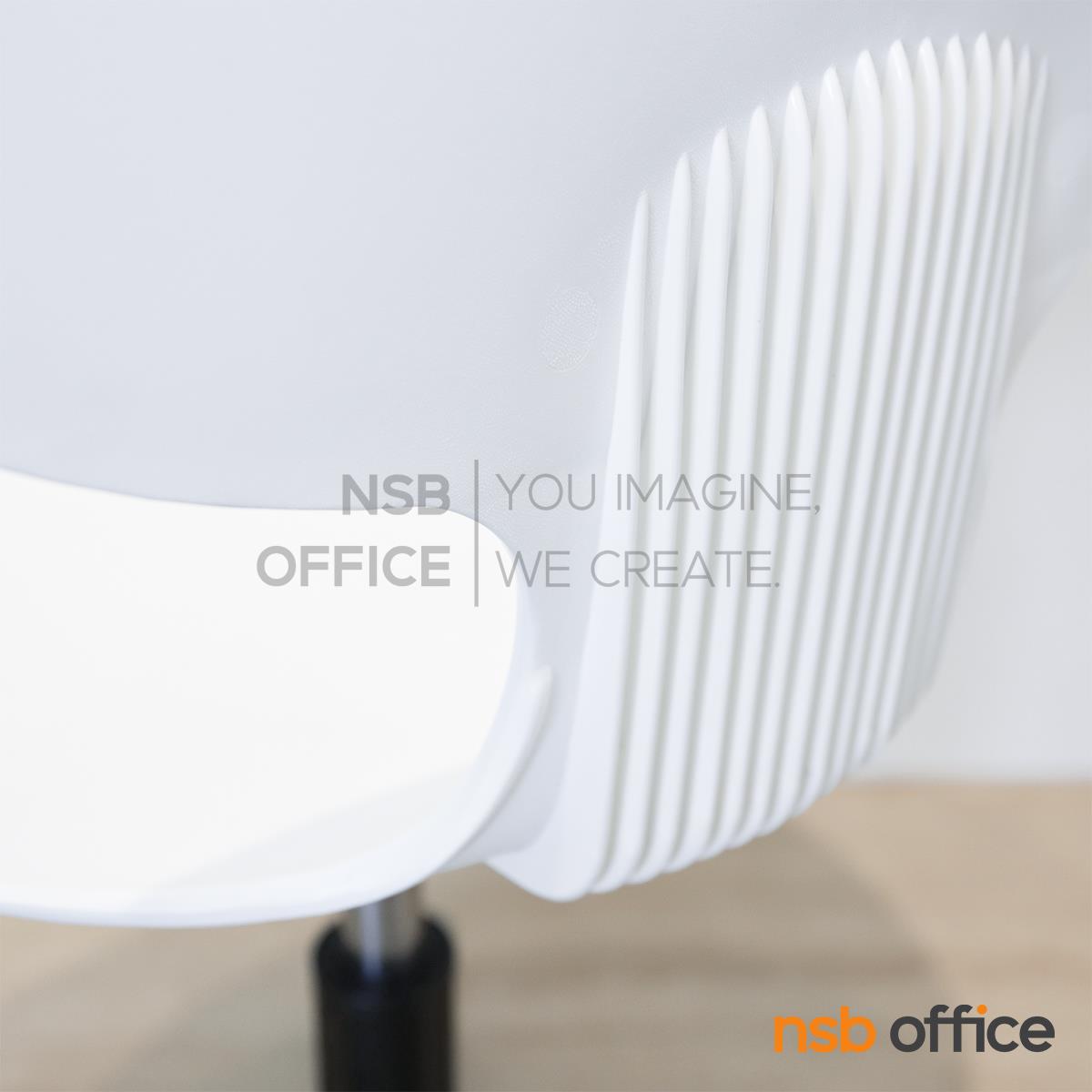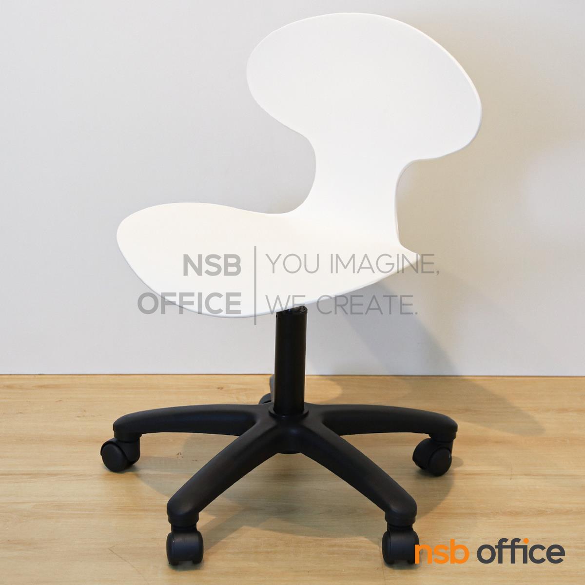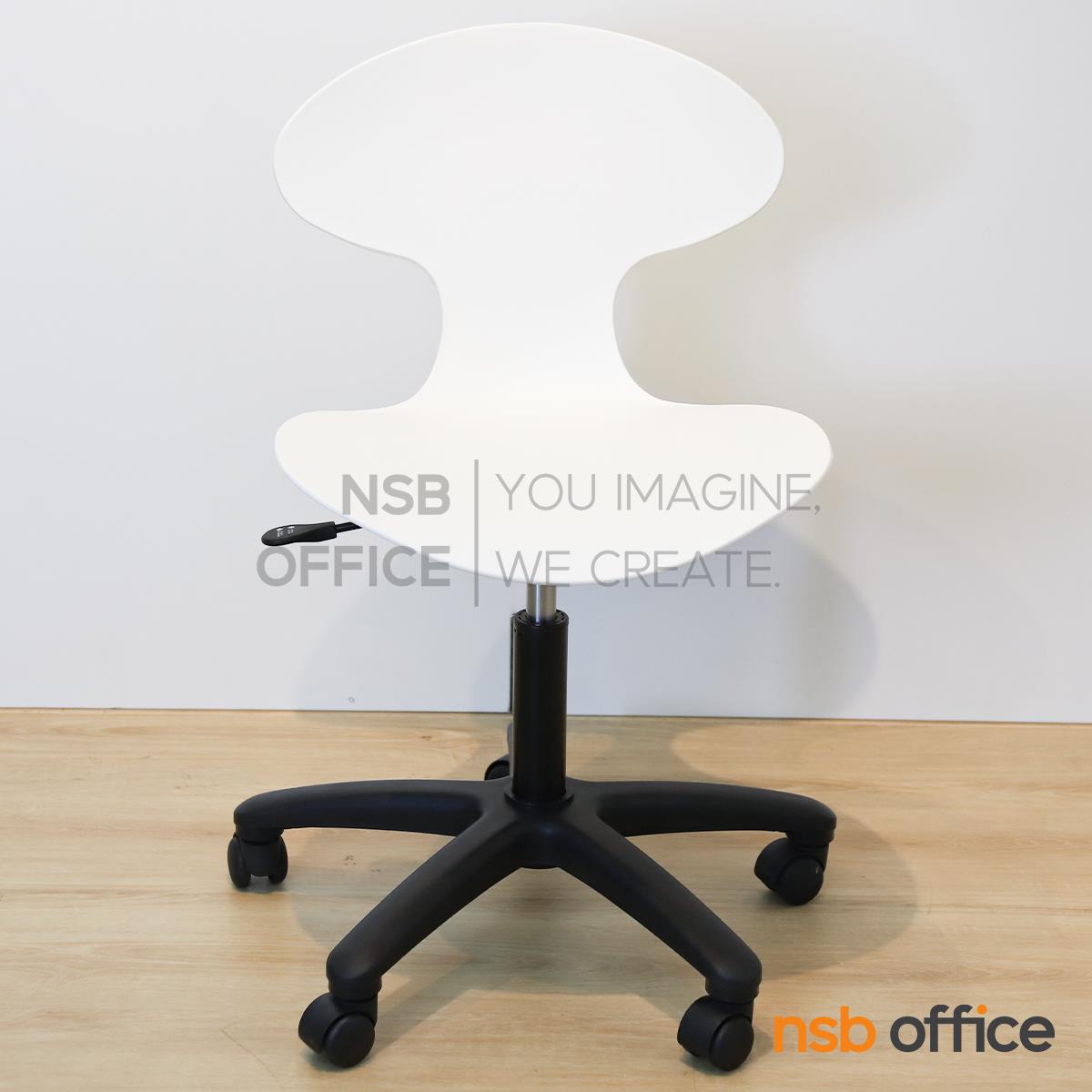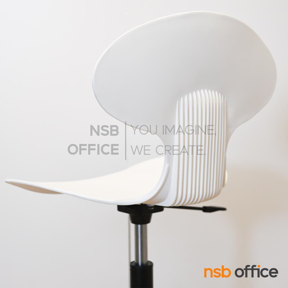ขาพลาสติกล้อ 5 แฉก เก้าอี้ปรับระดับด้วยระบบโช๊คแก๊ส(ไฮโดรลิค) พนักพิงหลังเปลือกโพลี่หนา สามารถทำความสะอาดง่าย
