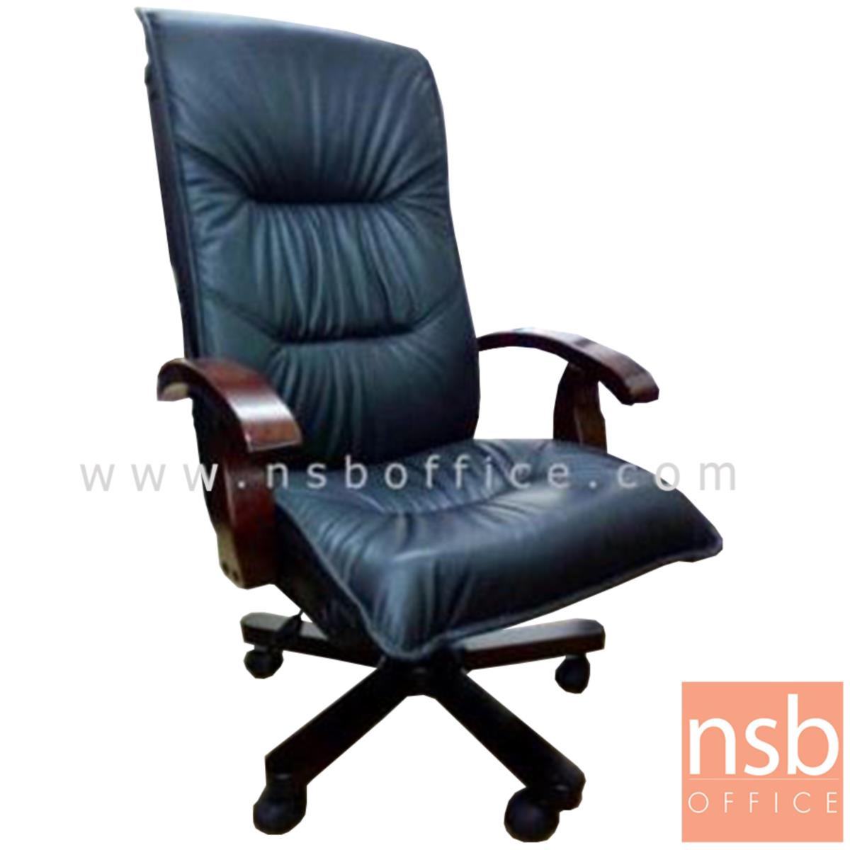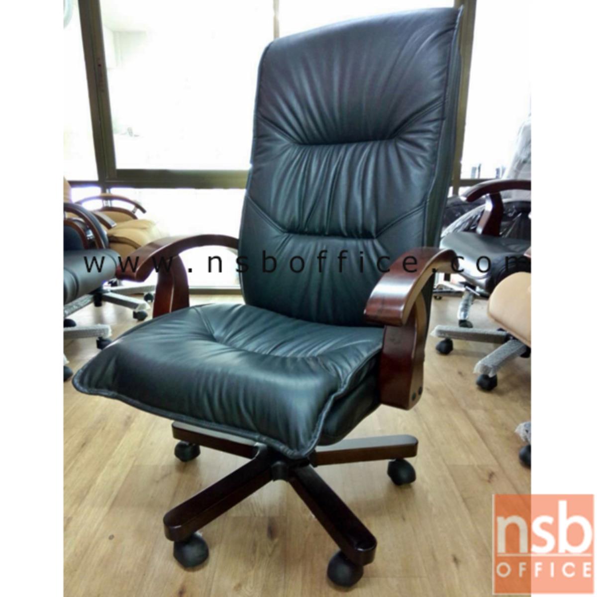 B25A038: เก้าอี้ผู้บริหารหนังแท้ รุ่น Kravitz (แครวิตซ์) โช๊คแก๊ส มีก้อนโยก ขาไม้