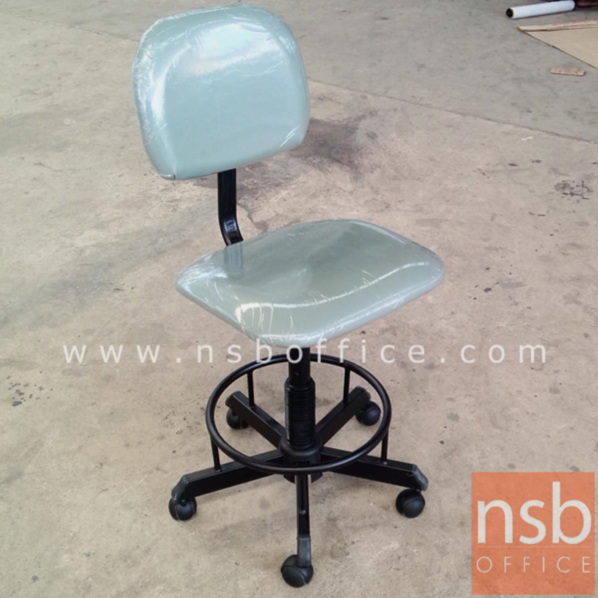 : เก้าอี้บาร์ที่นั่งเหลี่ยมล้อเลื่อน รุ่น K-42 ปรับระดับแกนเกลียว ขาเหล็กกล่องพ่นดำ