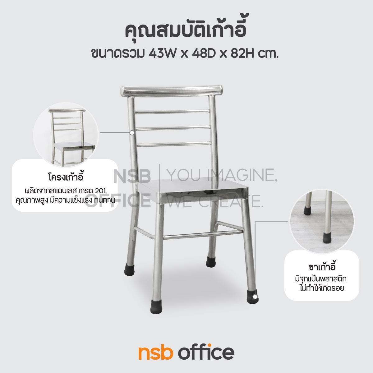 โครงสร้างเก้าอี้ผลิตจากสแตนเลส เกรด 201 คุณภาพสูง มีความแข็งแรง ทนทาน