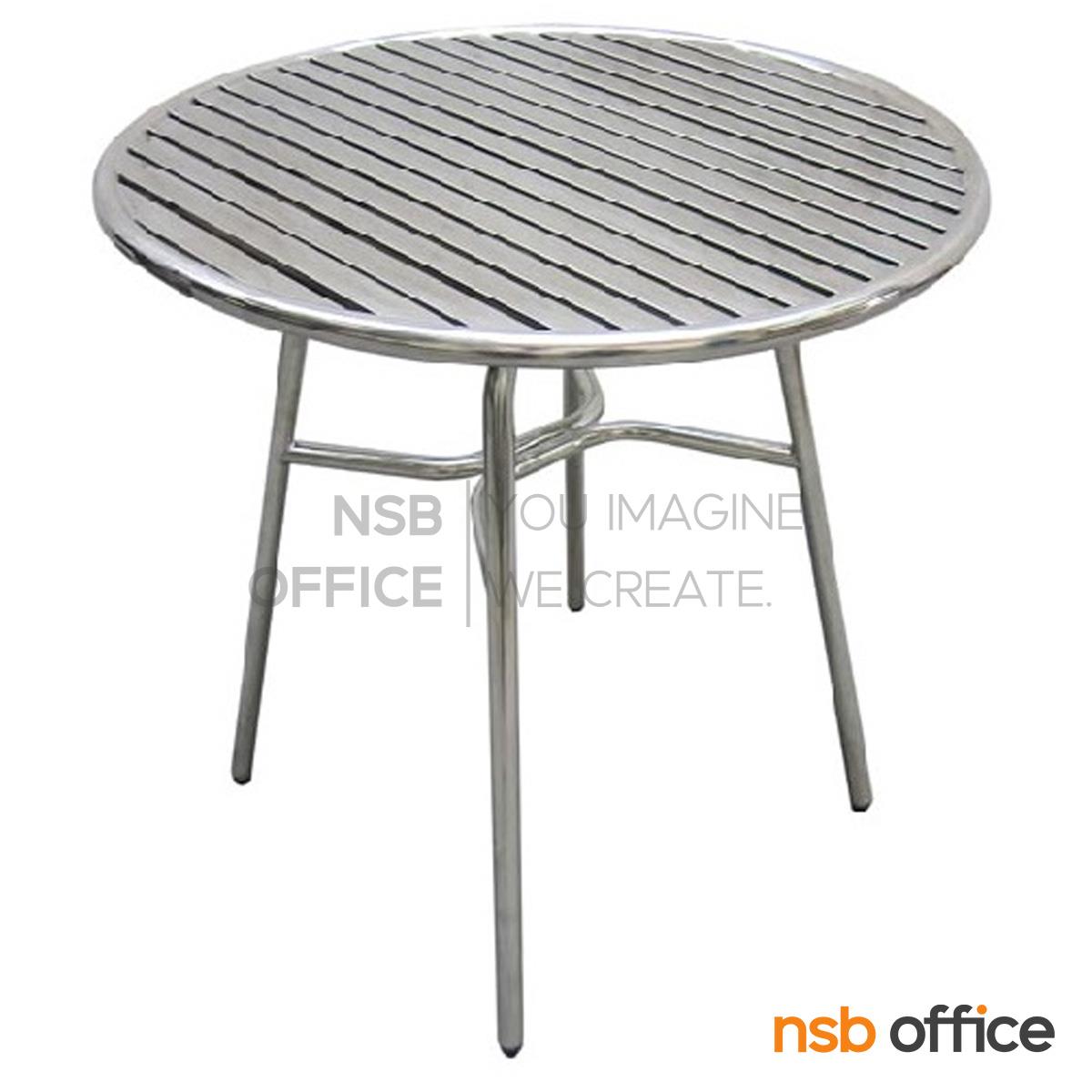 G12A103: โต๊ะหน้าสแตนเลสหน้าระแนง รุ่น Hushim (ฮัสฮิม) ขนาด 75Di cm. ขาสแตนเลส