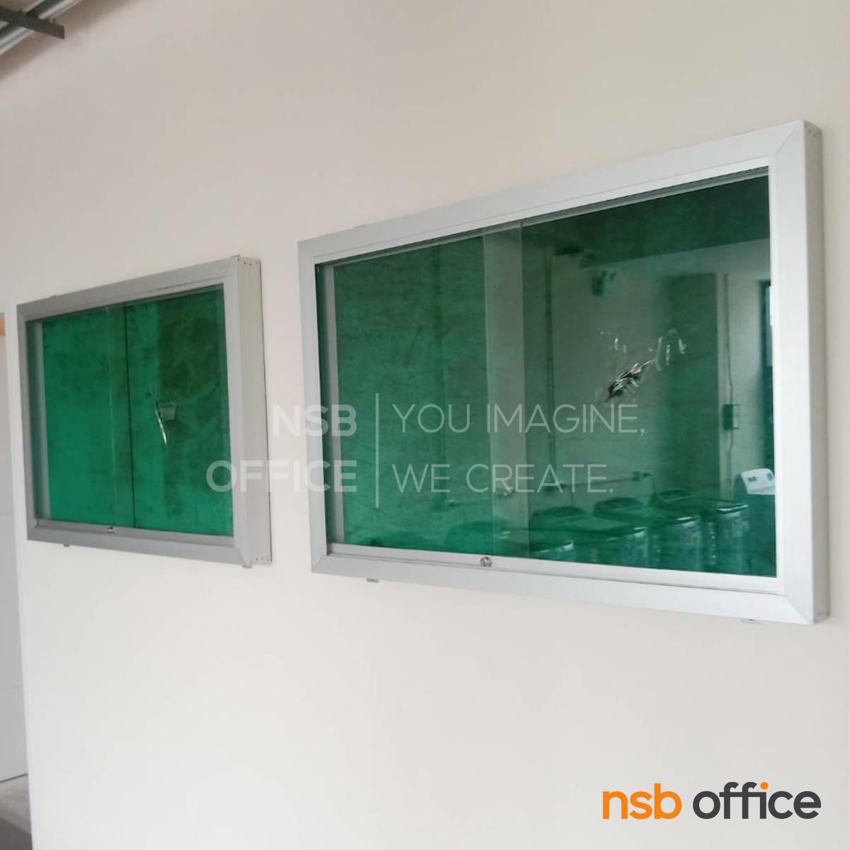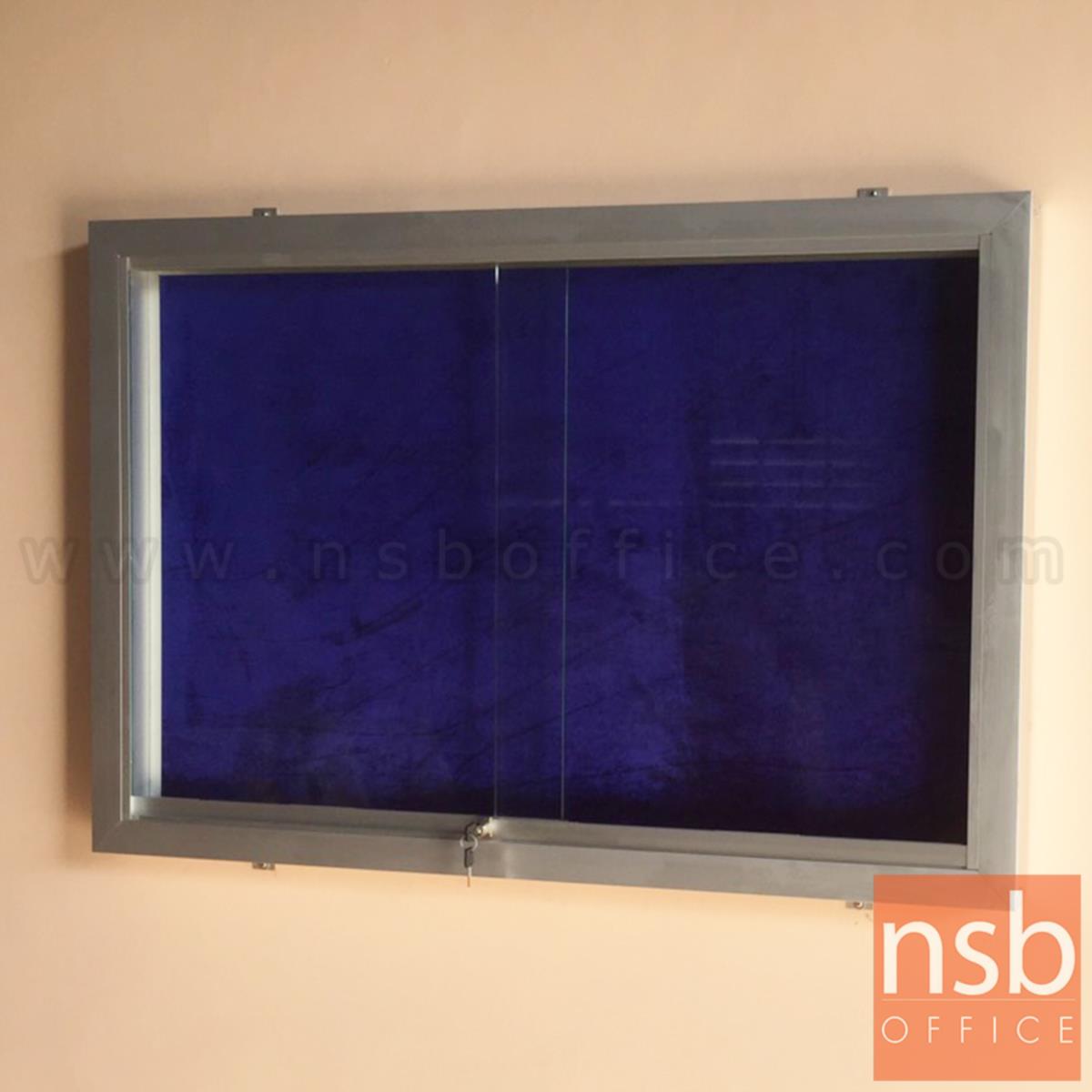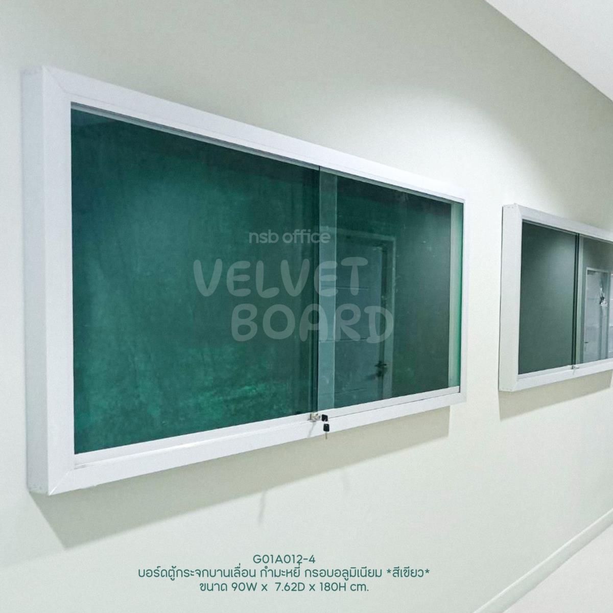 G01A012: บอร์ดตู้กระจกบานเลื่อน กำมะหยี่ กรอบอลูมิเนียม มีกุญแจล็อคฟันเลื่อย (พร้อมติดตั้งบนผนังปูน)