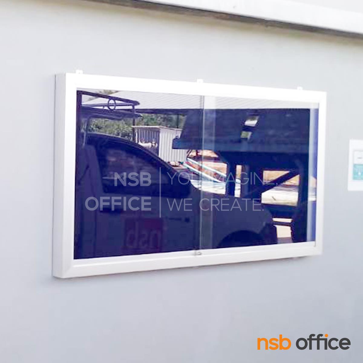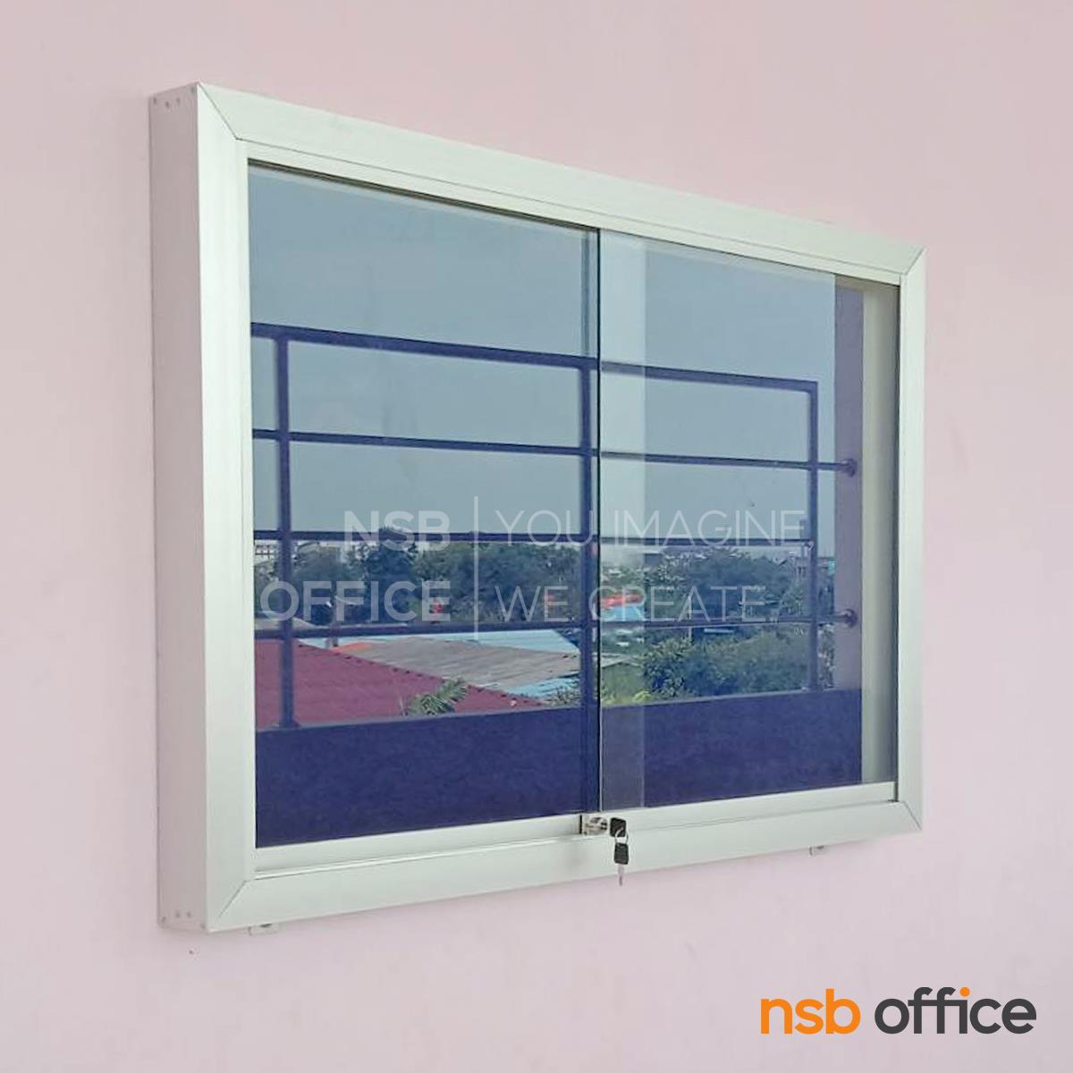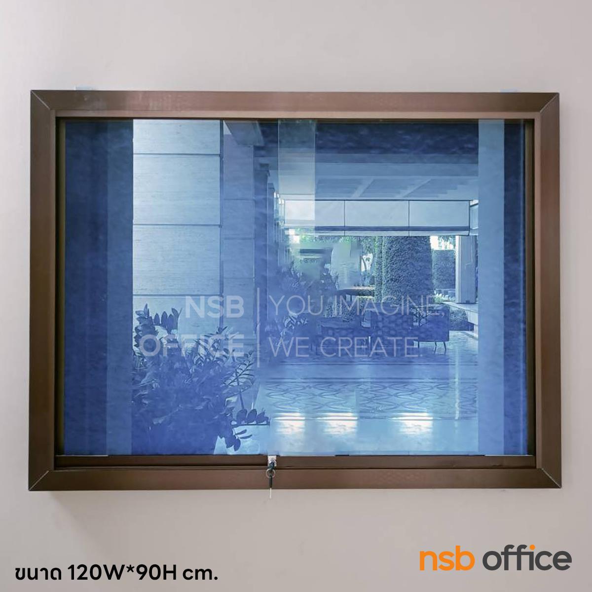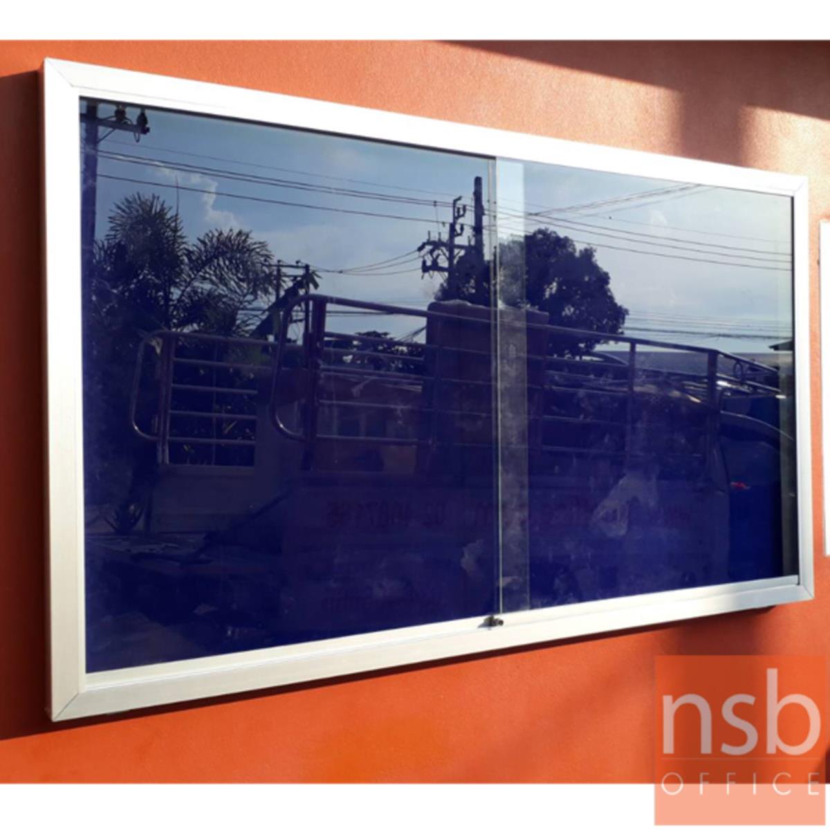 G01A012: บอร์ดตู้กระจกบานเลื่อน กำมะหยี่ กรอบอลูมิเนียม มีกุญแจล็อคฟันเลื่อย (พร้อมติดตั้งบนผนังปูน)