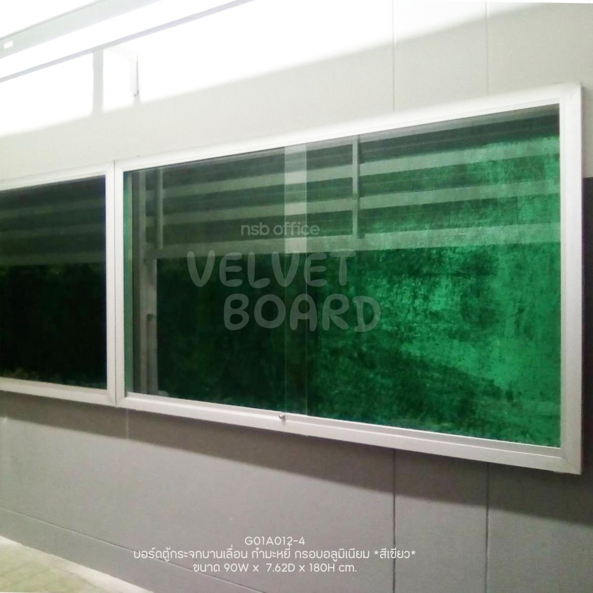 บอร์ดตู้กระจกแบบแขวน กำมะหยี่ กรอบอลูมิเนียม บานเลื่อนกระจก