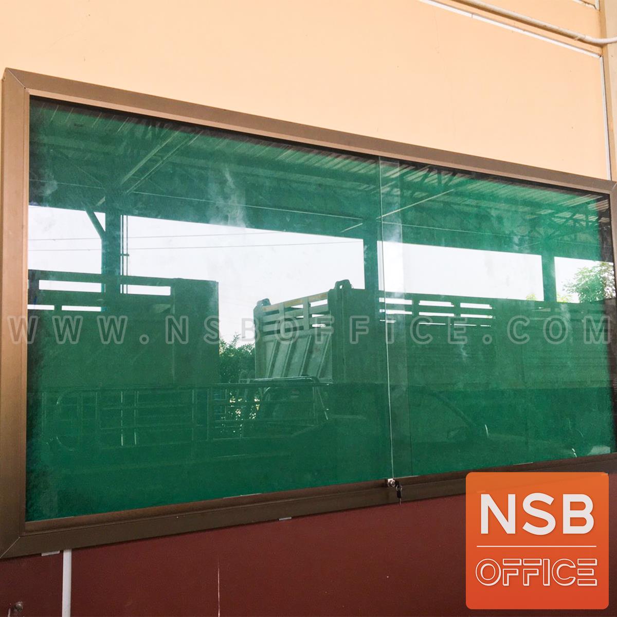 บานกระจกใสหนา 2 หุน มีกุญแจล็อค