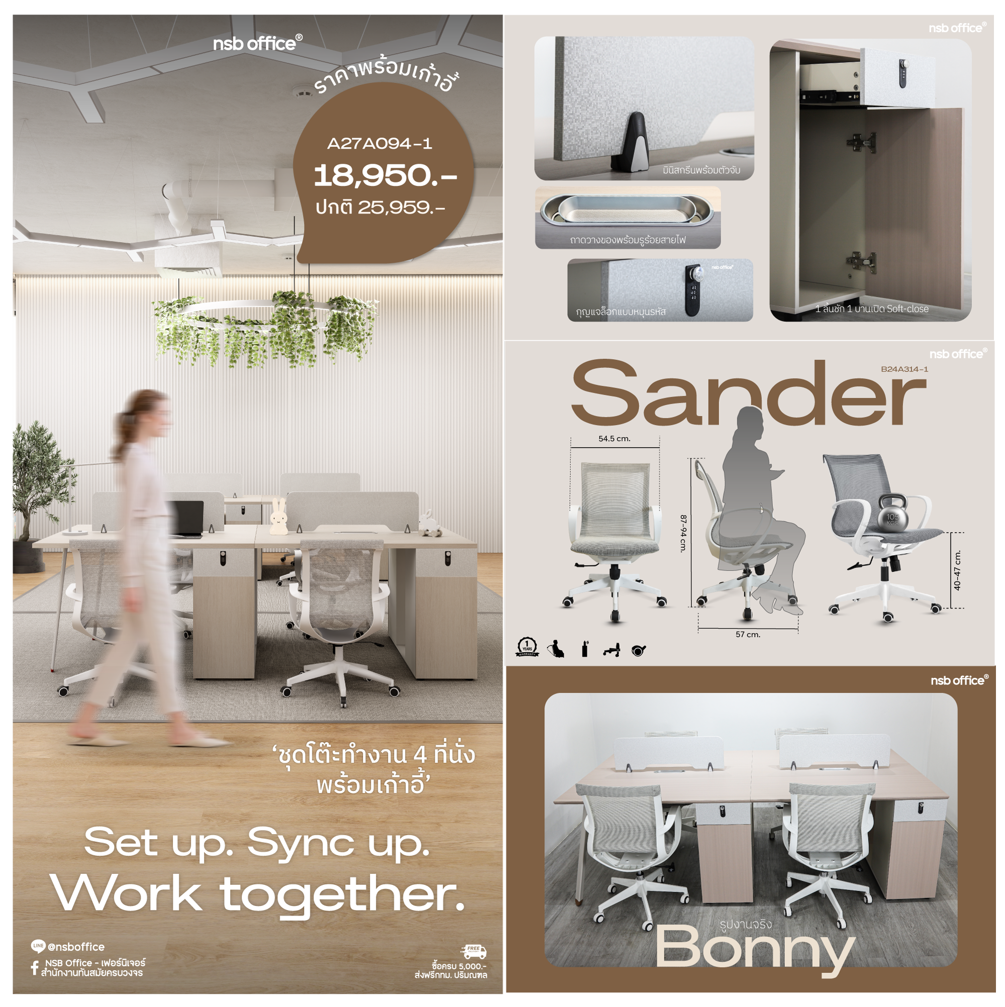 เหมาะสำหรับ ออฟฟิศเริ่มต้น พื้นที่ Co-working หรือทีมขนาดเล็กที่ต้องการโต๊ะทำงานครบชุดในงบจำกัด