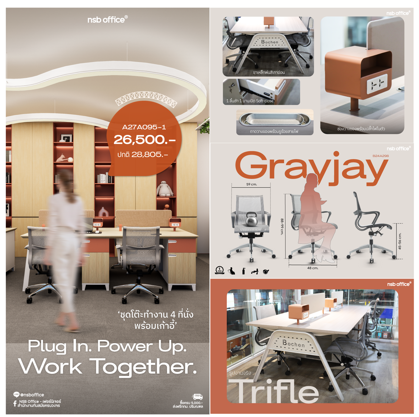 เหมาะสำหรับ ออฟฟิศขนาดกลาง ทีมออกแบบ หรือพื้นที่ Co-working ที่ต้องการฟังก์ชันครบ ดีไซน์โมเดิร์น และความทนทานในระยะยาว