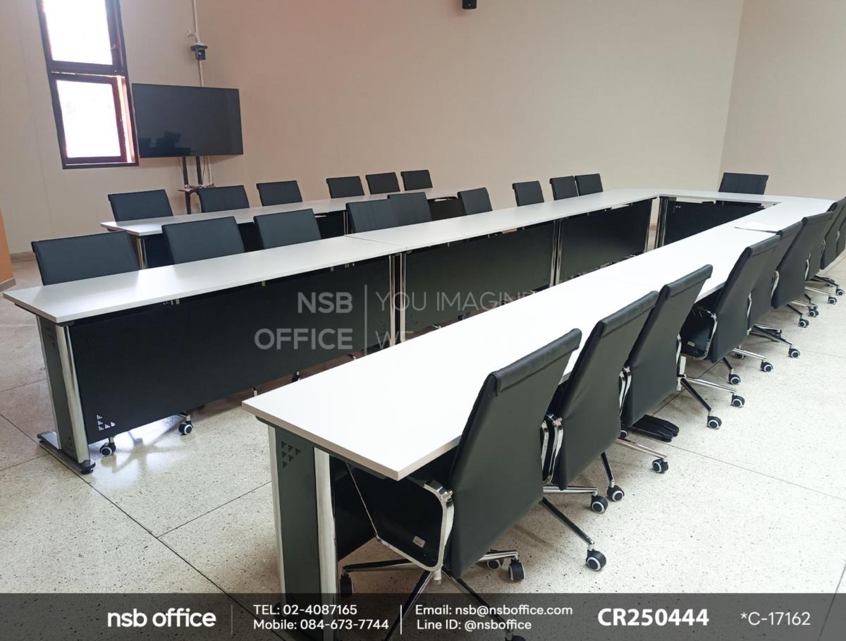 หากคุณกำลังมองหาโต๊ะประชุมที่สามารถปรับเปลี่ยนได้ตามความต้องการ ทางเราขอแนะนำเป็นโต๊ะประชุมตรงขาเหล็กตัวแอล รหัสสินค้า A18A081 ด้วยดีไซน์ที่ทันสมัยและวัสดุที่แข็งแรง ทนทาน โต๊ะประชุมนี้สามารถนำมาต่อกันเป็นโต๊ะประชุมใหญ่ได้อย่างง่ายดาย เสริมด้วยโต๊ะเข้ามุมทรงโค้ง รุ่น Billy (บิลลี่) รหัสสินค้า A05A250 เหมาะสำหรับการจัดการประชุมทั้งขนาดเล็กและขนาดใหญ่ ไม่ว่าจะเป็นการประชุมทีม การสัมมนา หรือแม้กระทั่งการจัดกิจกรรมพิเศษต่างๆ ใช้งานคู่กับเก้าอี้สำนักงานรุ่น Jasmine (จัสมิน) รหัสสินค้า B26A127 ที่ออกแบบมาเพื่อความสะดวกสบาย ทำให้ทุกคนในทีมสามารถมีสมาธิและมีส่วนร่วมในการประชุมได้อย่างเต็มที่ สะดวกในการติดตั้งและเคลื่อนย้าย สามารถปรับเปลี่ยนรูปแบบตามความต้องการของคุณได้อย่างง่ายดาย ไม่ว่าคุณจะต้องการโต๊ะรูปตัวแอล หรือโต๊ะรูปสี่เหลี่ยม โต๊ะของเราสามารถตอบโจทย์ทุกความต้องการค่ะ