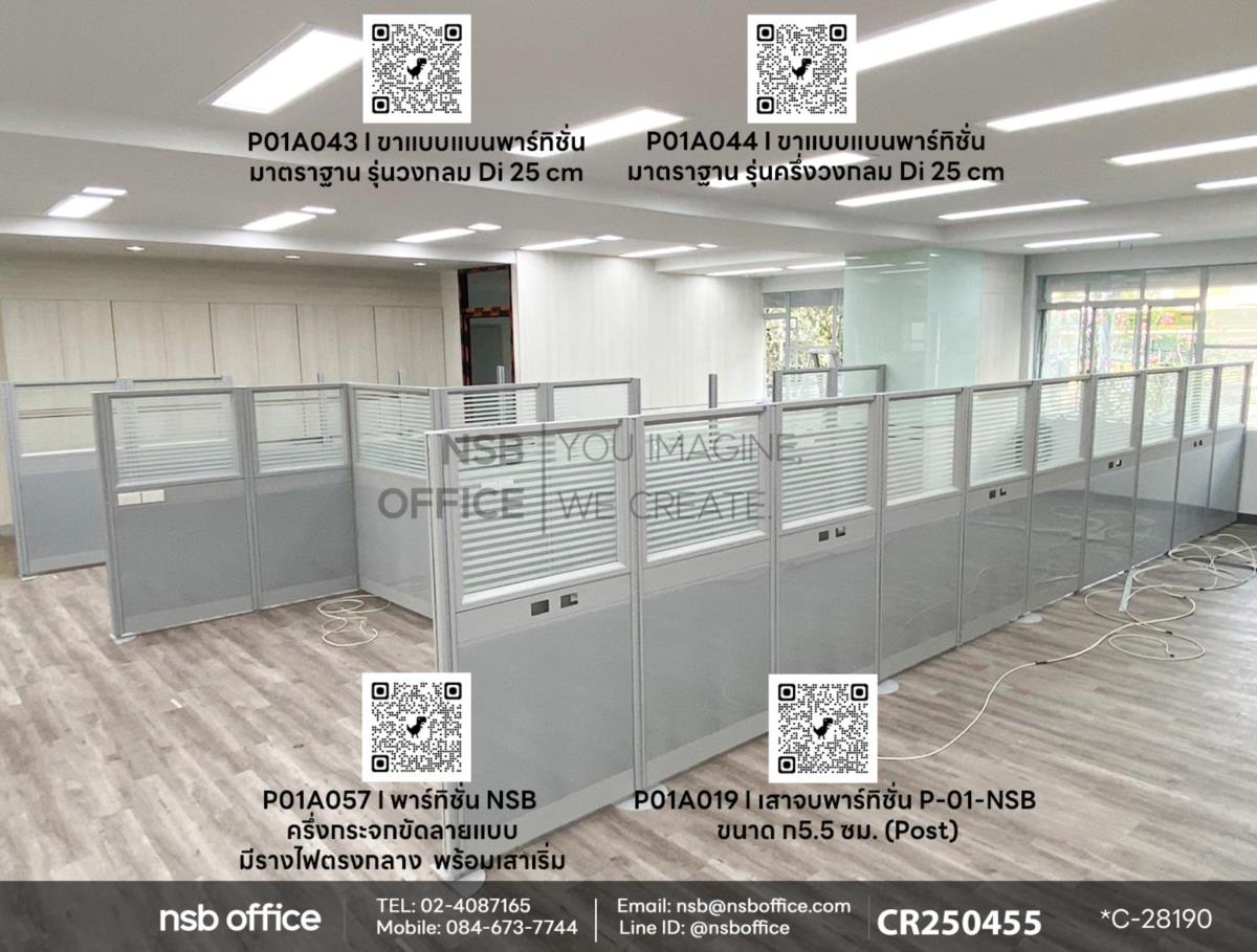 เปลี่ยนบรรยากาศการทำงานของคุณด้วย พาร์ทิชั่น NSB ครึ่งกระจกขัดลาย รหัสสินค้า P01A057 P17 สีเทาอ่อน เฟรมสีเทา เข้ากับทุกบรรยากาศภายในสำนักงาน พาร์ทิชั่นครึ่งกระจกขัดลายที่ไม่เพียงแต่สวยงาม แต่ยังช่วยเพิ่มความเป็นส่วนตัวให้กับที่ทำงานของคุณด้วย พาร์ทิชั่นสามารถร้อยสายไฟเพิ่มความเป็นระเบียบเรียบร้อย และเพิ่มความสะดวกสบายในการใช้งานด้วยรางไฟที่ออกแบบมาอย่างลงตัว ช่วยให้คุณสามารถติดตั้งอุปกรณ์ไฟฟ้าได้อย่างง่ายดาย เหมาะสำหรับสำนักงานที่ต้องการแบ่งพื้นที่ใช้สอยให้เป็นสัดส่วนและมีระเบียบมากๆค่ะ