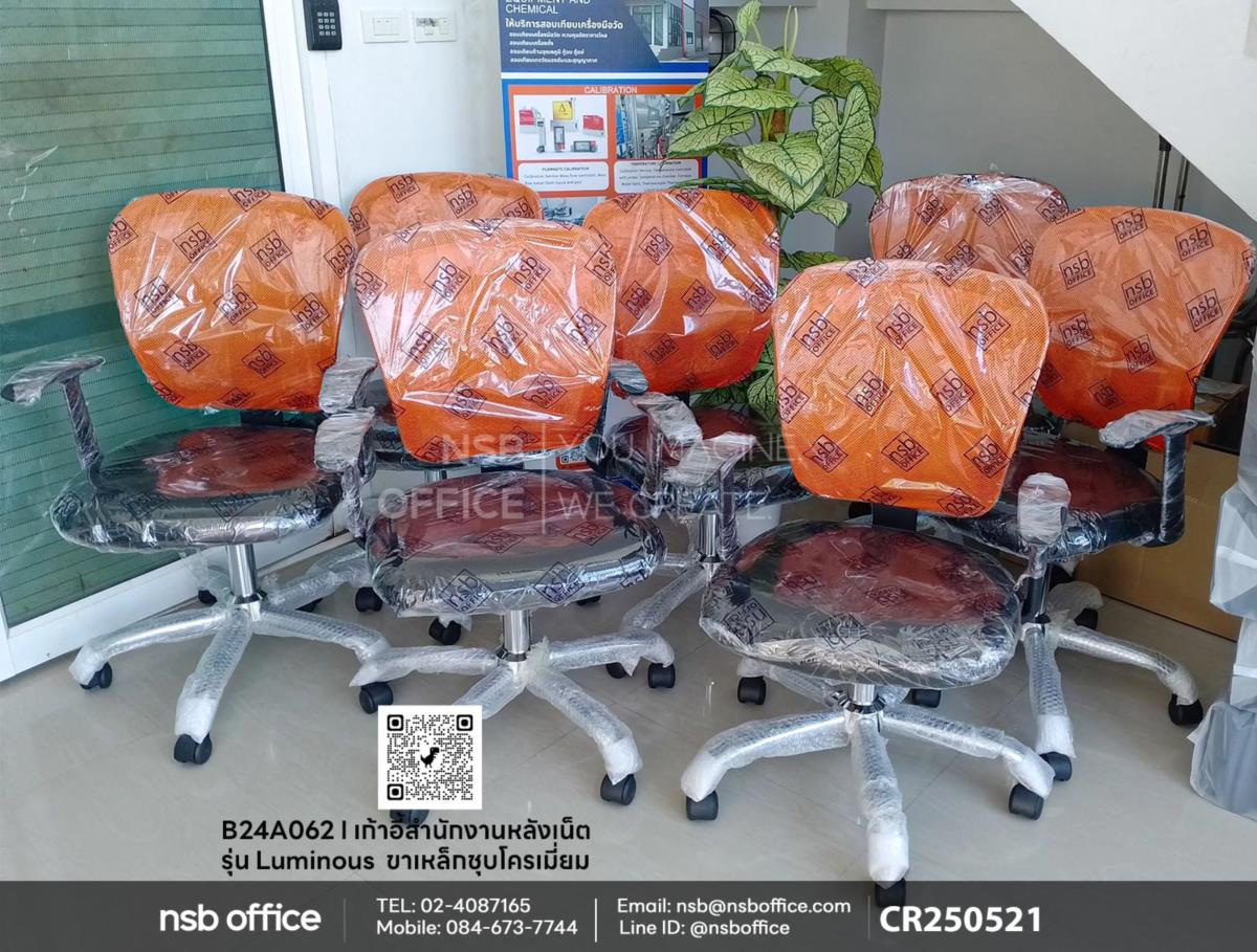 หน้างานนี้ลูกค้าได้เลือกซื้อเก้าอี้สำนักงานหลังเน็ต รุ่น Luminous (ลูมินัส) รหัสสินค้า B24A062 โครงขาเหล็กชุบโครเมี่ยม ไปใช้สำหรับนั่งทำงานภายในสำนักงาน ด้วยวัสดุที่มีคุณภาพสูงและการออกแบบที่ทันสมัย หลังเน็ตระบายอากาศได้ดี ช่วยให้คุณรู้สึกเย็นสบาย ไม่ร้อนเมื่อใช้งานเป็นเวลานาน ตอบโจทย์ทุกความต้องการในการนั่งทำงาน ไม่ว่าคุณจะทำงานจากที่บ้านหรือในสำนักงาน เก้าอี้นี้จะช่วยเพิ่มประสิทธิภาพในการทำงานของคุณอย่างแน่นอนค่ะ