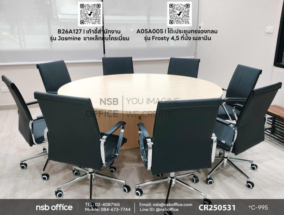 โต๊ะประชุมทรงวงกลมรุ่น Frosty รหัสสินค้า A05A005 ใช้งานคู่กันกับเก้าอี้สำนักงานรุ่น Jasmine (จัสมิน) รหัสสินค้า B26A127 ที่จะเปลี่ยนบรรยากาศการทำงานของคุณให้มีชีวิตชีวาและสร้างสรรค์มากยิ่งขึ้น ไม่เพียงแต่มีดีไซน์ที่สวยงามและทันสมัย แต่ยังช่วยส่งเสริมการสื่อสารและการทำงานเป็นทีมได้อย่างมีประสิทธิภาพค่ะ