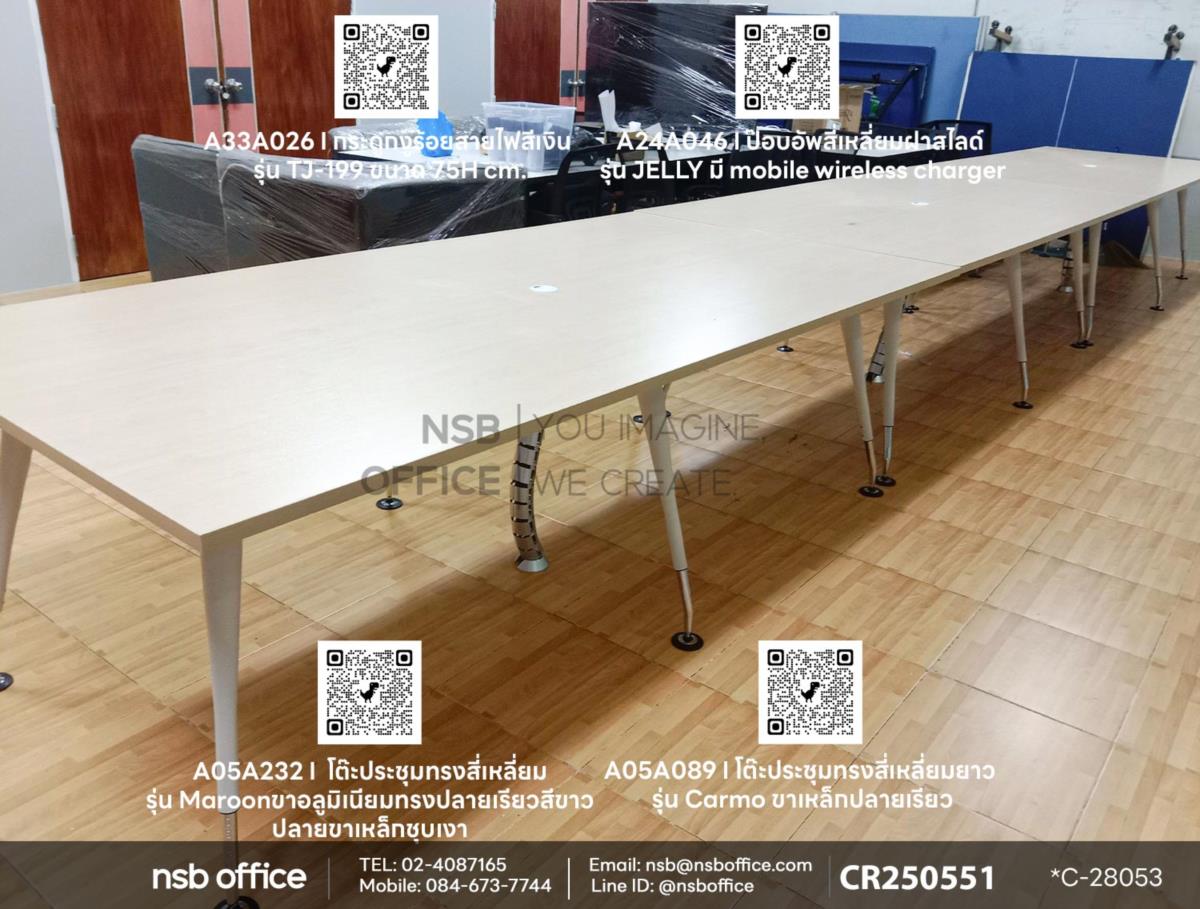 เปลี่ยนบรรยากาศการประชุมของคุณให้มีความทันสมัยและสะดวกสบายมากยิ่งขึ้น ด้วยโต๊ะประชุมทรงสี่เหลี่ยมรุ่น Maroon (มาร์รูน) รหัสสินค้า A05A232 และรุ่น Carmo (คาร์โม) รหัสสินค้า A05A089 หน้าท็อปสีเมเปิ้ล เสริมกระดูกงูร้อยสายไฟสีเงิน รุ่น TJ-199 รหัสสินค้า A33A026 ช่วยให้การจัดการสายไฟเป็นระเบียบเรียบร้อย ผลิตจากวัสดุที่ทนทาน แข็งแรง และง่ายต่อการทำความสะอาด รองรับการประชุมได้หลายคน ทำให้ทุกคนสามารถมีส่วนร่วมในการพูดคุยงานได้อย่างเต็มที่ค่ะ