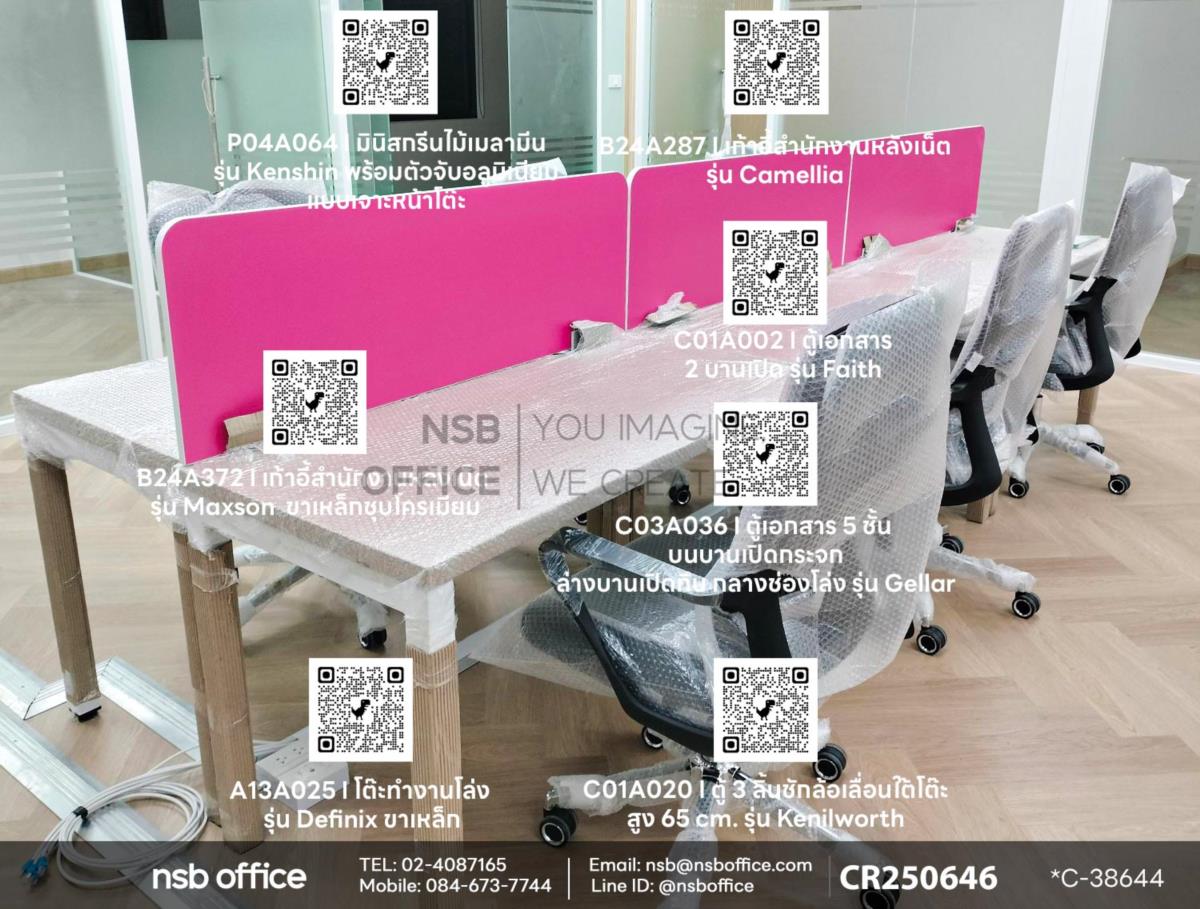 จัดส่งสินค้าถึงที่เรียบร้อยแล้วค่ะ หน้างานนี้ลูกค้าได้เลือกซื้อโต๊ะทำงานโล่ง รุ่น Definix (ดิฟินิกซ์) รหัสสินค้า A13A025 และได้เเลือกซื้อมินิสกรีนรุ่น Kenshin (เคนชิน) รหัสสินค้า P04A064 มาเสริมโต๊ะทำงานเพิ่มความเป็นส่วนตัว สีที่เลือกใช้เป็นสีชมพูเข้มขอบขาว ใช้งานคู่กันกับ เก้าอี้สำนักงานหลังเน็ต รุ่น Camellia (คามิเลีย) รหัสสินค้า B24A287 และ เก้าอี้สำนักงานหลังเน็ต รุ่น Maxson (แม็กซ์สัน) รหัสสินค้า B24A372 และได้เลือกซื้อตู้เอกสารรุ่น Faith (เฟธ) รหัสสินค้า C01A002 และรุ่น Gellar (เกลลาร์) รหัสสินค้า C03A036 มาใช้สำหรับหน้างานนี้ด้วยค่ะ