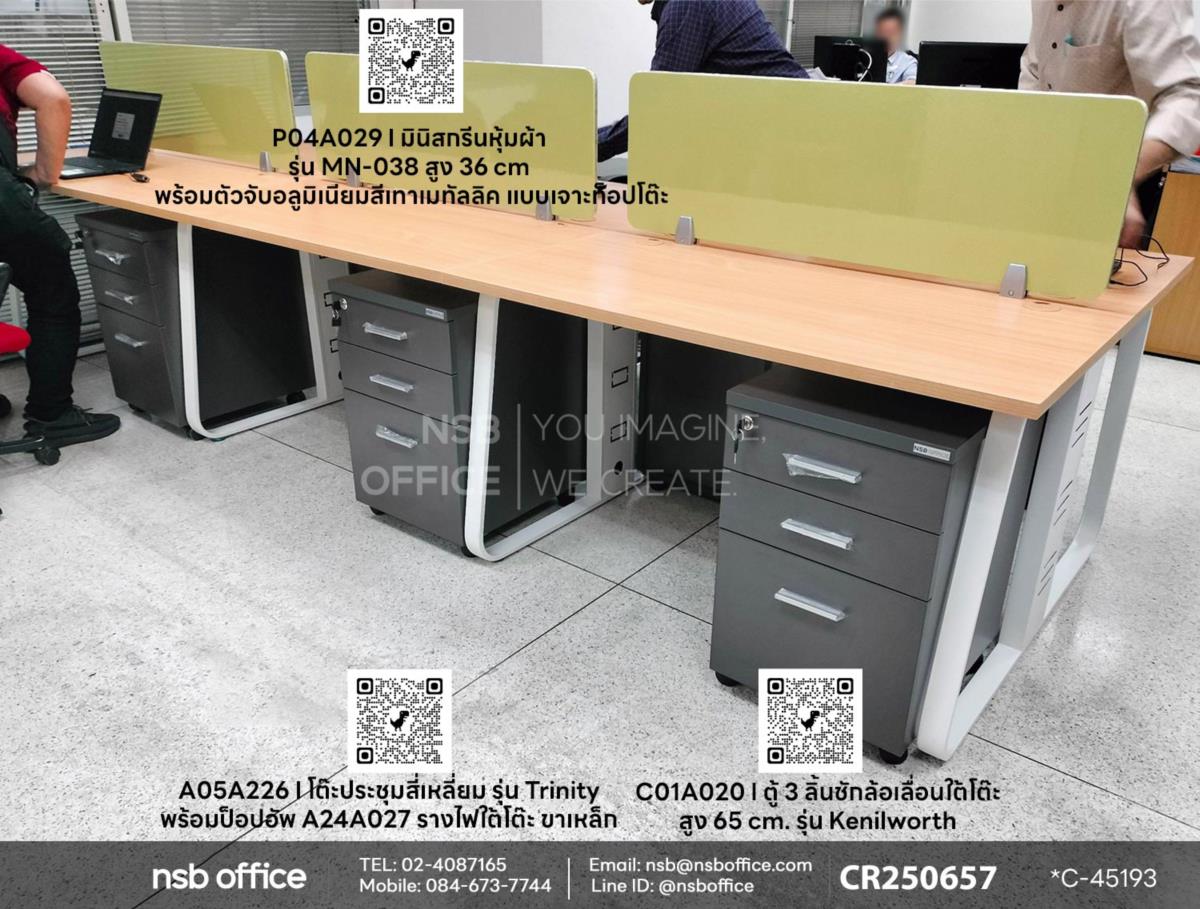 เปลี่ยนมุมทำงานของคุณให้มีสไตล์และความสะดวกสบายด้วย โต๊ะทำงานรุ่น Trinity (ทรินิตี้) รหัสสินค้า A05A226 หน้าท็อปสีบีช เสริมมินิสกรีนหุ้มผ้ารุ่น MN-038 รหัสสินค้า P04A029 ผ้าสีเขียว (GL-226) และตู้ 3 ลิ้นชักล้อเลื่อนใต้โต๊ะ รุ่น Kenilworth (เคนิลเวิร์ธ) รหัสสินค้า C01A020 จะช่วยให้คุณสามารถเก็บเอกสาร อุปกรณ์สำนักงาน หรือของใช้ส่วนตัวได้อย่างเป็นระเบียบ ไม่ต้องกังวลเรื่องพื้นที่อีกต่อไป ด้วยดีไซน์ที่ทันสมัยและวัสดุคุณภาพสูง ทำให้โต๊ะนี้ไม่เพียงแต่ดูดี แต่ยังทนทานต่อการใช้งานในระยะยาวอีกด้วยค่ะ