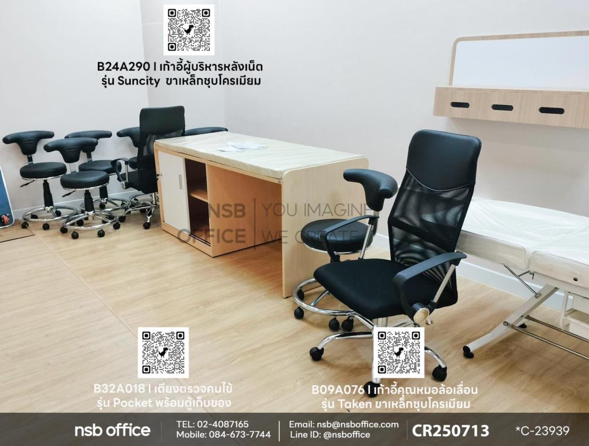 จัดส่งสินค้าเรียบร้อยแล้วค่ะ หน้างานนี้เป็นโซนสำหรับโรงพยาบาล คลินิก ลูกค้าได้เลือกซื้อเตียงตรวจคนไข้รุ่น Pocket (พ็อคเก็ต) รหัสสินค้า B32A018 หน้าบานสีขาว/ส่วนที่เหลือสีเมเปิ้ล ที่ออกแบบมาเพื่อความสะดวกสบายและปลอดภัย พร้อมฟังก์ชันการใช้งานที่หลากหลาย ใช้งานคู่กับเก้าอี้คุณหมอล้อเลื่อนรุ่น Taken (เทคเค่น) รหัสสินค้า B09A076 ของเรายังช่วยให้คุณหมอสามารถเคลื่อนที่ได้อย่างสะดวกสบาย ไม่ว่าจะเป็นการตรวจรักษาหรือให้คำปรึกษา ก็สามารถทำได้อย่างมีประสิทธิภาพค่ะ