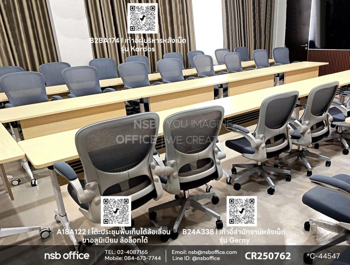 สำหรับใครที่กำลังมองหาโต๊ะประชุมที่สามารถพับเก็บได้ เมื่อไม่ได้ใช้งาน มีพื้นที่สำหรับนั่งประชุมน้อย ทางเราขอแนะนำเป็นโต๊ะประชุมพับเก็บได้ล้อเลื่อน รุ่น Lecover (ลีโคลเวอร์) รหัสสินค้า A18A122 หน้าท็อปสีเมเปิ้ล แล้วก็ถ้าหากมองหาเก้าอี้ที่เสริมการใช้งานอยู่ด้วยเก้าอี้สำนักงานหลังเน็ต รุ่น Gerny (เจอร์นี่) รหัสสินค้า B24A338 และเก้าอี้ผู้บริหารหลังเน็ต รุ่น Kardos (คาร์ดอส) รหัสสินค้า B28A174 คือคำตอบที่คุณต้องการค่ะ